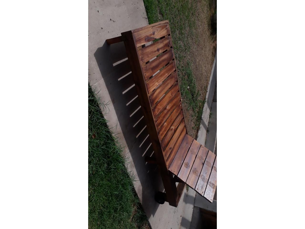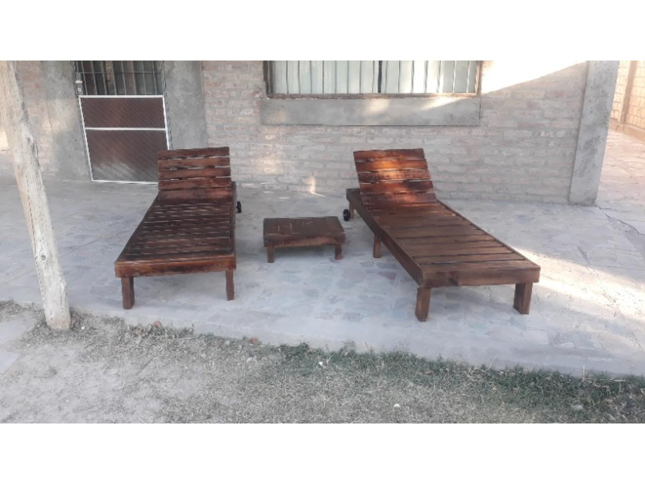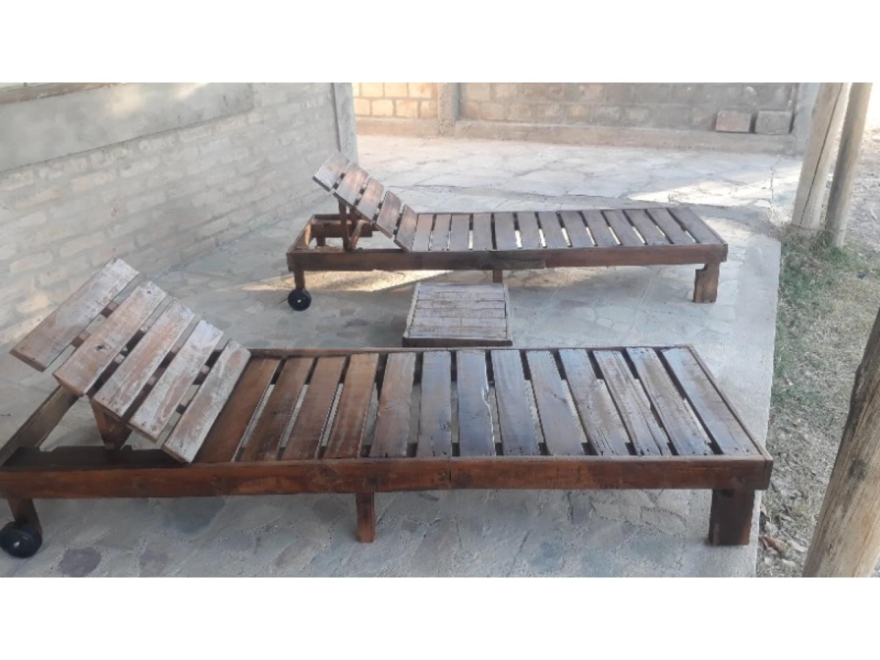Combo dos camastros más una mesita ratona, de madera de eucalipto salinga sin perforaciones de clavos, lijadas y pintadas, las medidas son 2.04 mts x 0.64 mts.