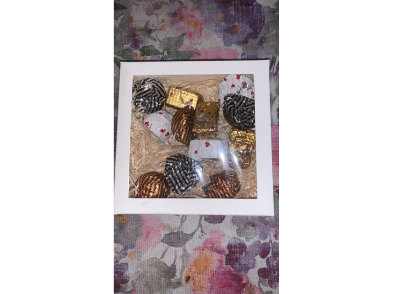 Bombones rellenos con una delicada presentación. Delicioso corazón de dulce de leche, menta o nougat