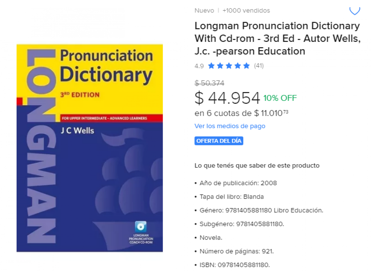 LONGMAN 3rd Edition Diccionario Pronunciación Ingles y CD, para Traductorado, Usado en buen estado.