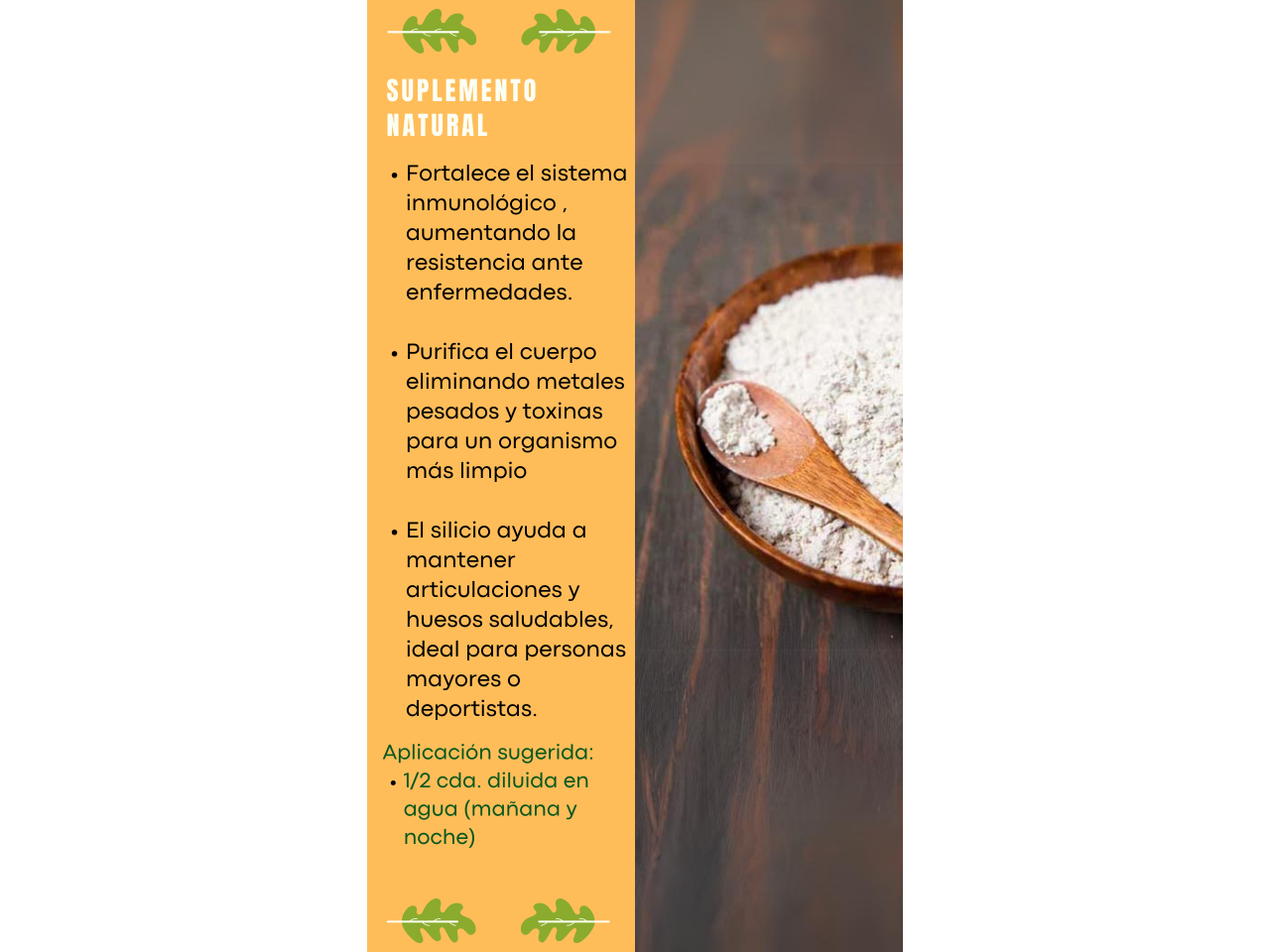 Suplemento mineral de diatomea para consumo humano.
