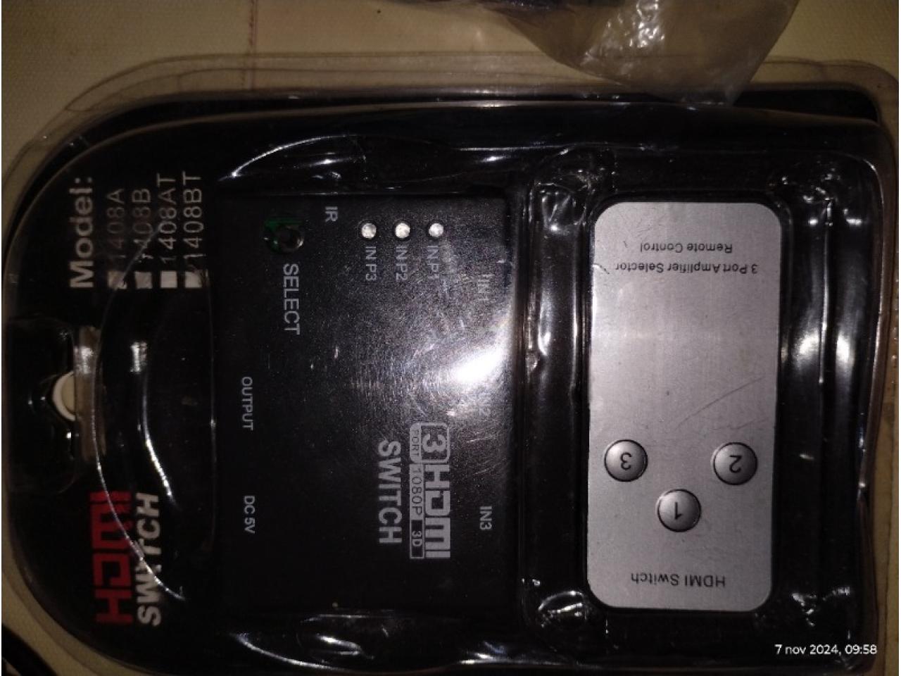 Con 3 entradas HDMI y una salida HDMI con control remoto Muy fácil de usar: conectar y listo Te permite conectar hasta 3 dispositivos diferentes en una sola entrada de videoIdeal para televisores o monitores que ya no tienen más entradas HDMI disponibles Otros CABLES, TODO NUEVO SIN USO