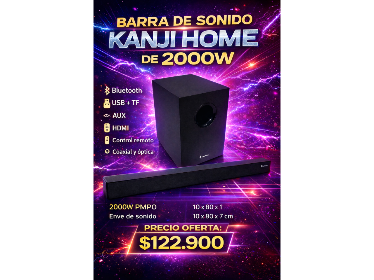 Barra De Sonido 2.1 Bluetooth Harrison Kanji Subwoofer 2200w