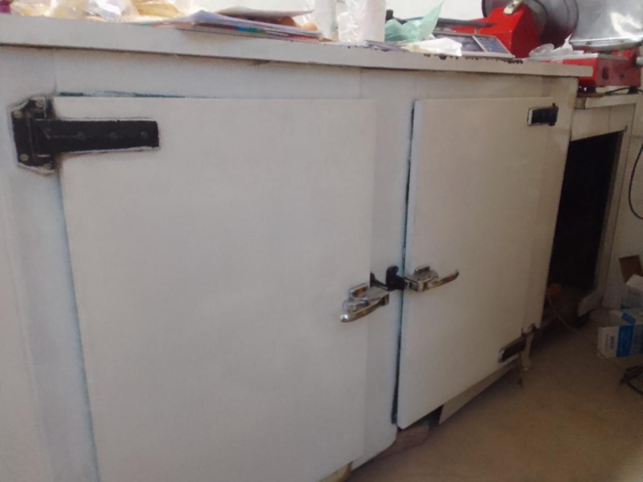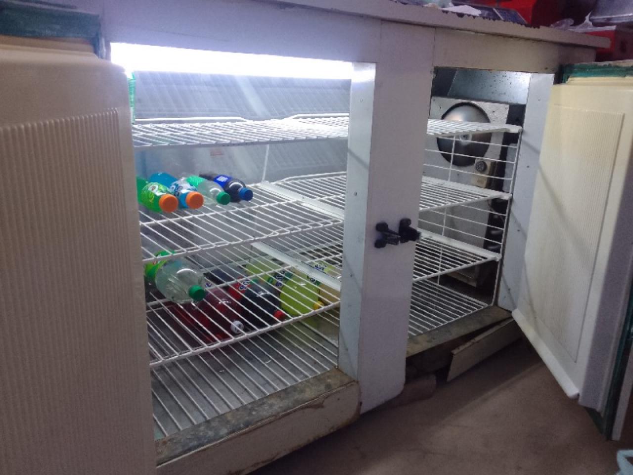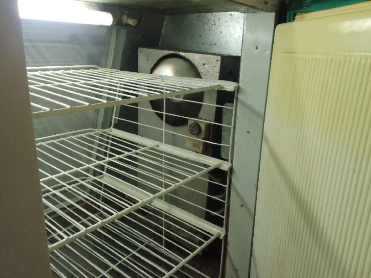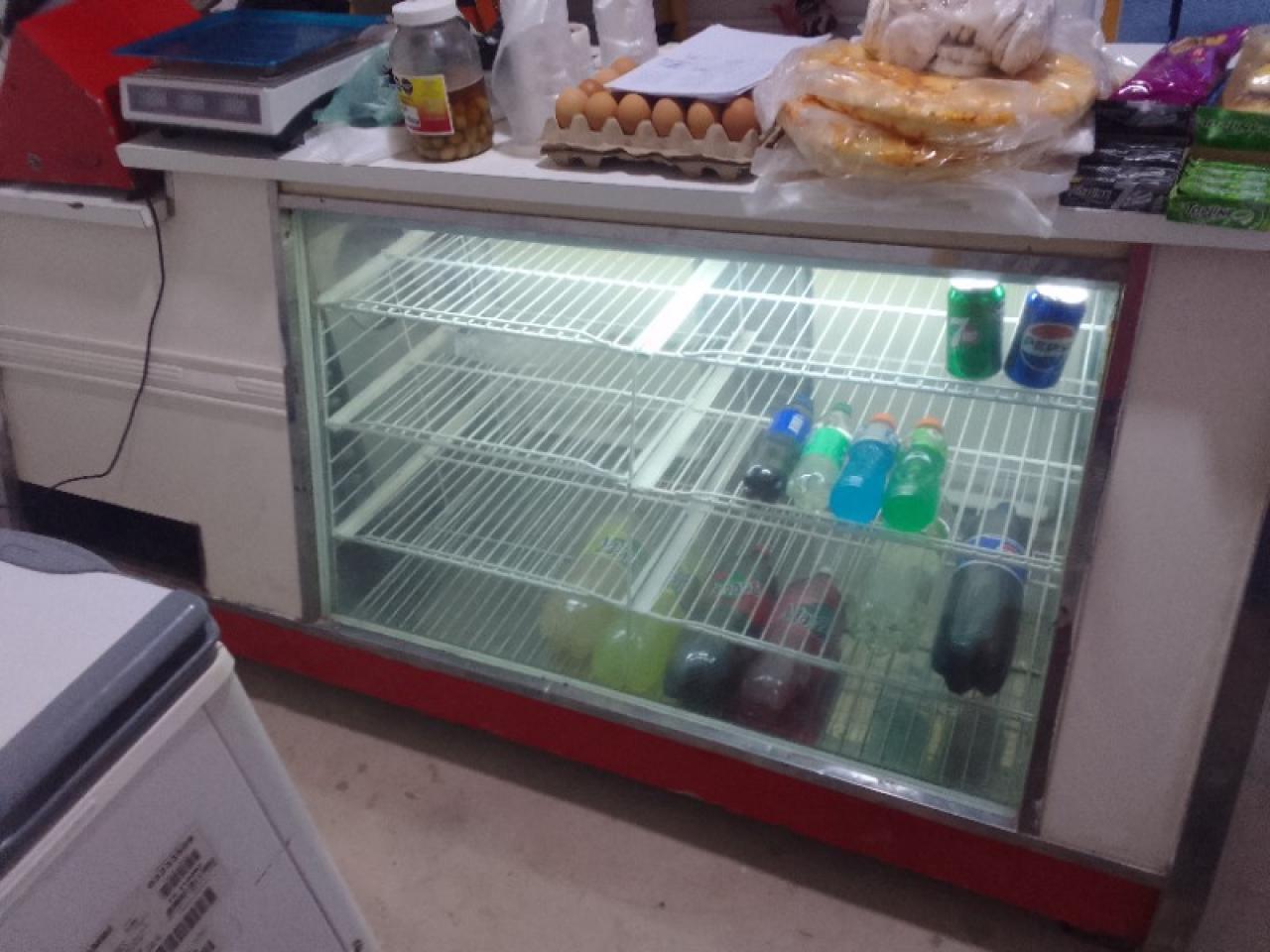 Heladera vitrina, con escalon para maquina de cortar fiambre, funcionando perfectamente, largo 2.20 mts, alto 1 mts, ancho de mostrador 60 cms, motor nuevo de 1/4+ refrigerante R134a, puertas con manijas nuevas.
