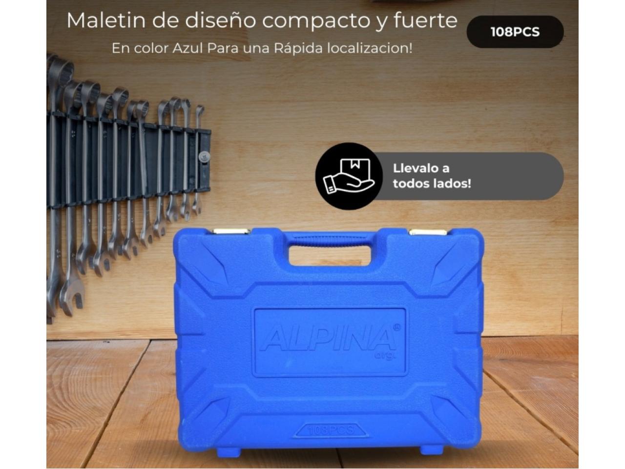 Este completo set de llaves tubulares y puntas combinadas de 108 piezas es ideal para realizar trabajos mecánicos y de mantenimiento con precisión y comodidad. Fabricado en acero cromado, ofrece alta durabilidad y resistencia. El set viene con un práctico estuche de transporte que facilita su organización y traslado, siendo perfecto para llevar en el automóvil o tener a mano en tu taller.