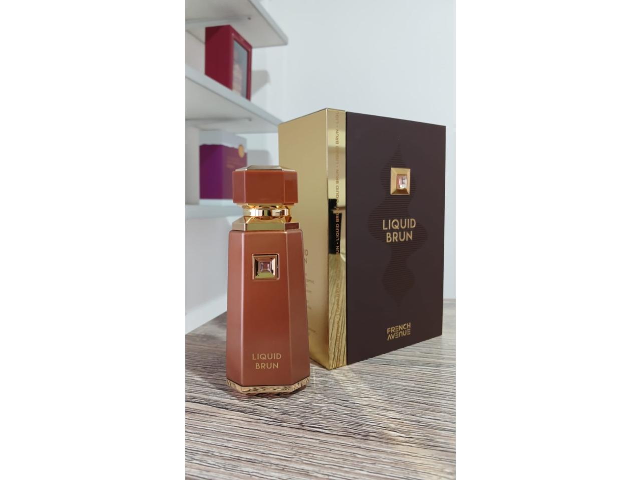 Liquid Brun de French Avenue es una fragancia creada para el hombre moderno que desea dejar una huella memorable. Su familia olfativa amaderada se fusiona con la calidez de la vainilla, resultando en un aroma que perdura en el tiempo y proyecta confianza y carisma. Este perfume es una verdadera declaración, ideal para quienes buscan destacar y ser recordados. Las Notas de Salida son canela, flor de azahar del naranjo, cardamomo y bergamota; las Notas de Corazón son vainilla Bourbon y elemí; las Notas de Fondo son praliné, ambroxan, madera de gaiac y almizcle.
