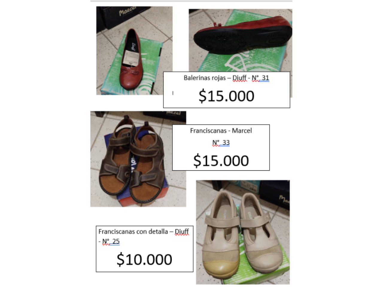 Calzado de nilas, varios modelos, marca Marcel, nuevos en caja. SE escuchan ofertas.