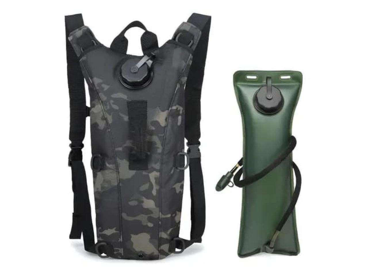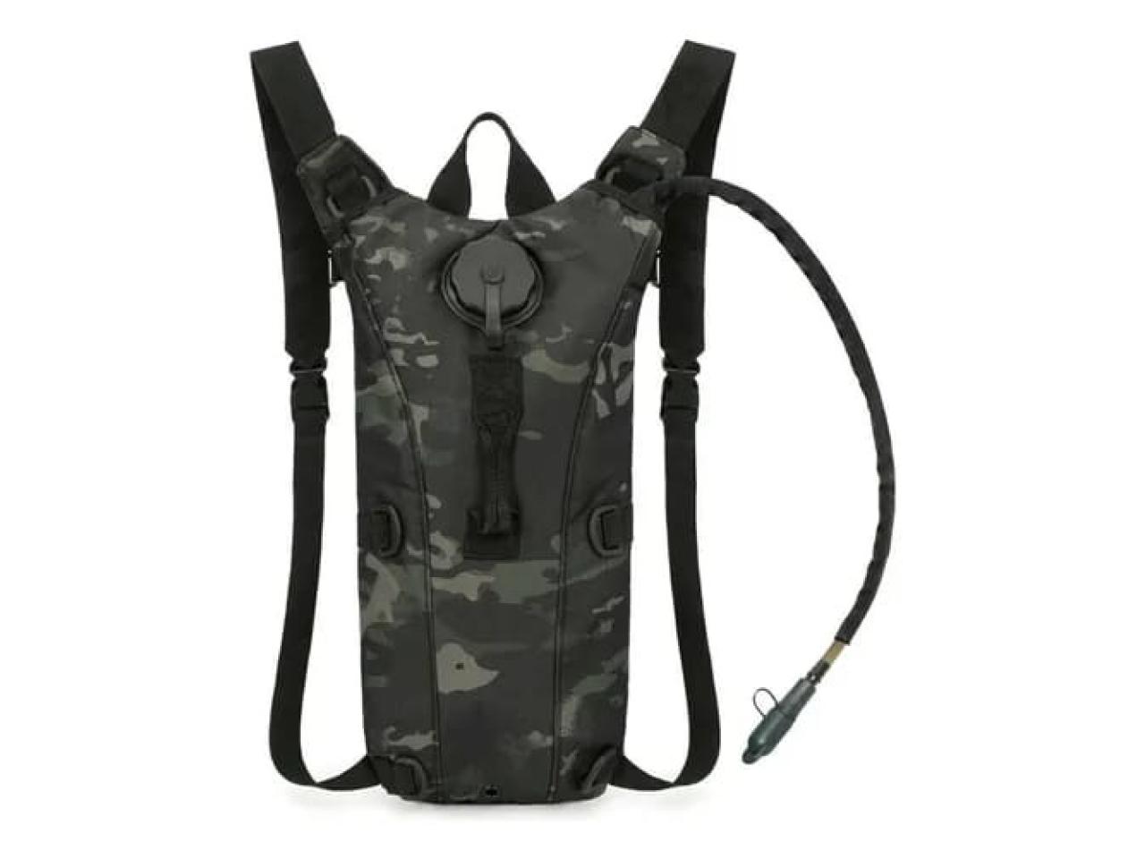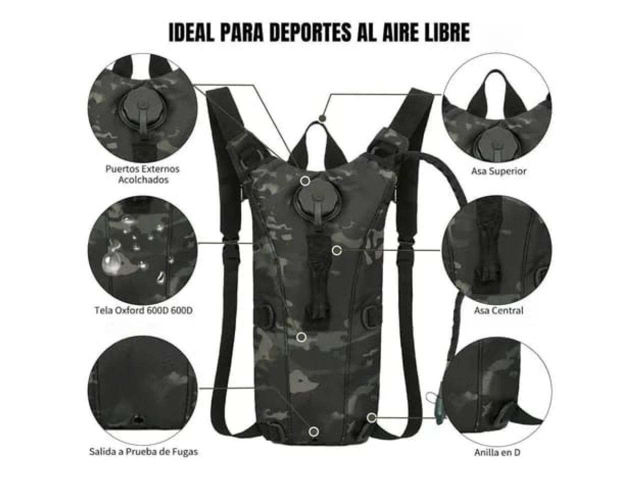 Se trata de una mochila de hidratación táctica, comúnmente conocida por la marca CamelBak, utilizada para actividades al aire libre como senderismo o ciclismo.