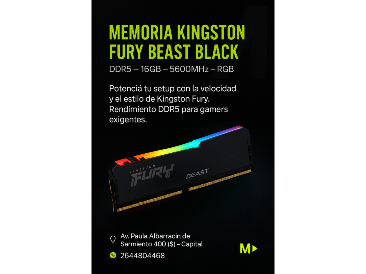 Memoria Kingston Fury Beast Black - Ddr5 - 8gb - Pc6000 - Macnum