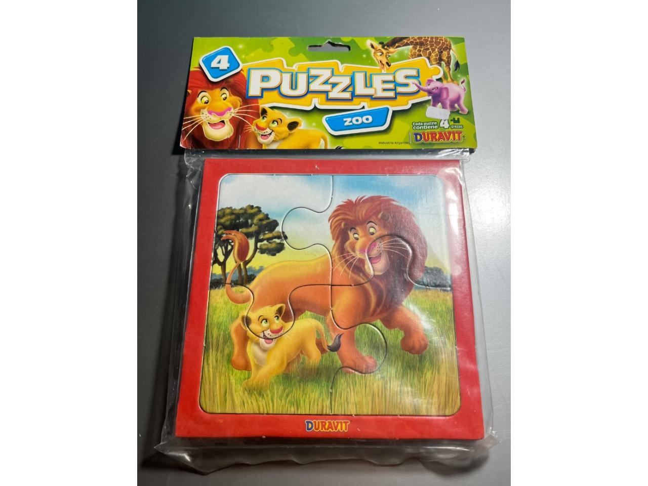 4 piezas por puzzle, vienen 4 animales