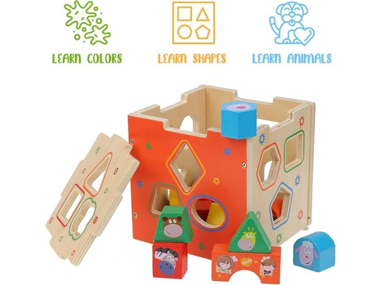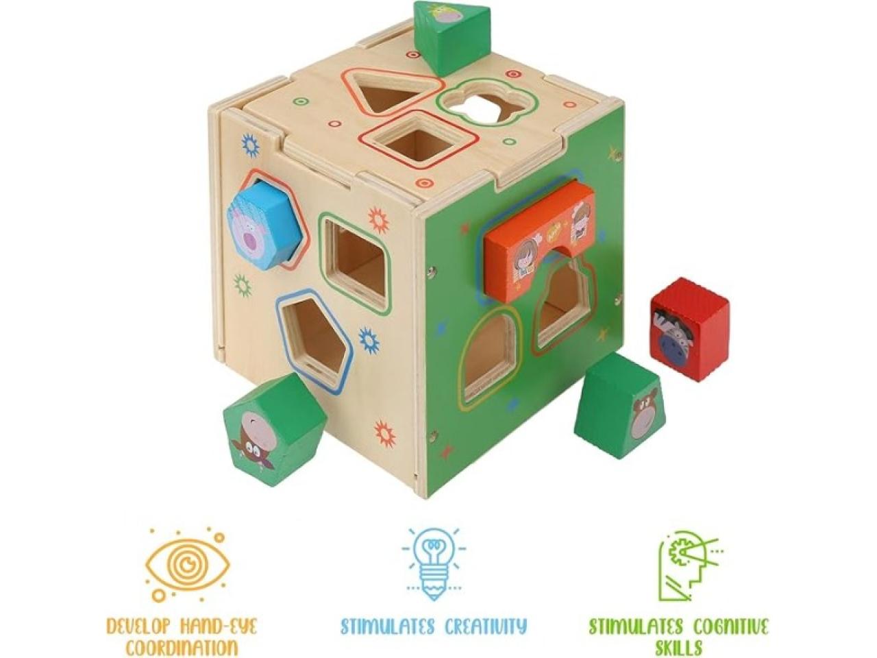 Cubo Didáctico Con Encastres y Bloques De Madera
