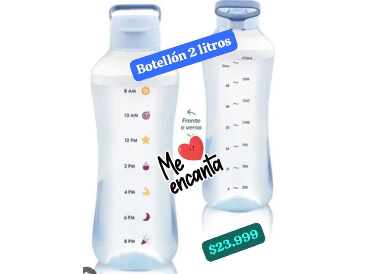 Último botellón celeste 2 litros, con medidas y horarios para el agua