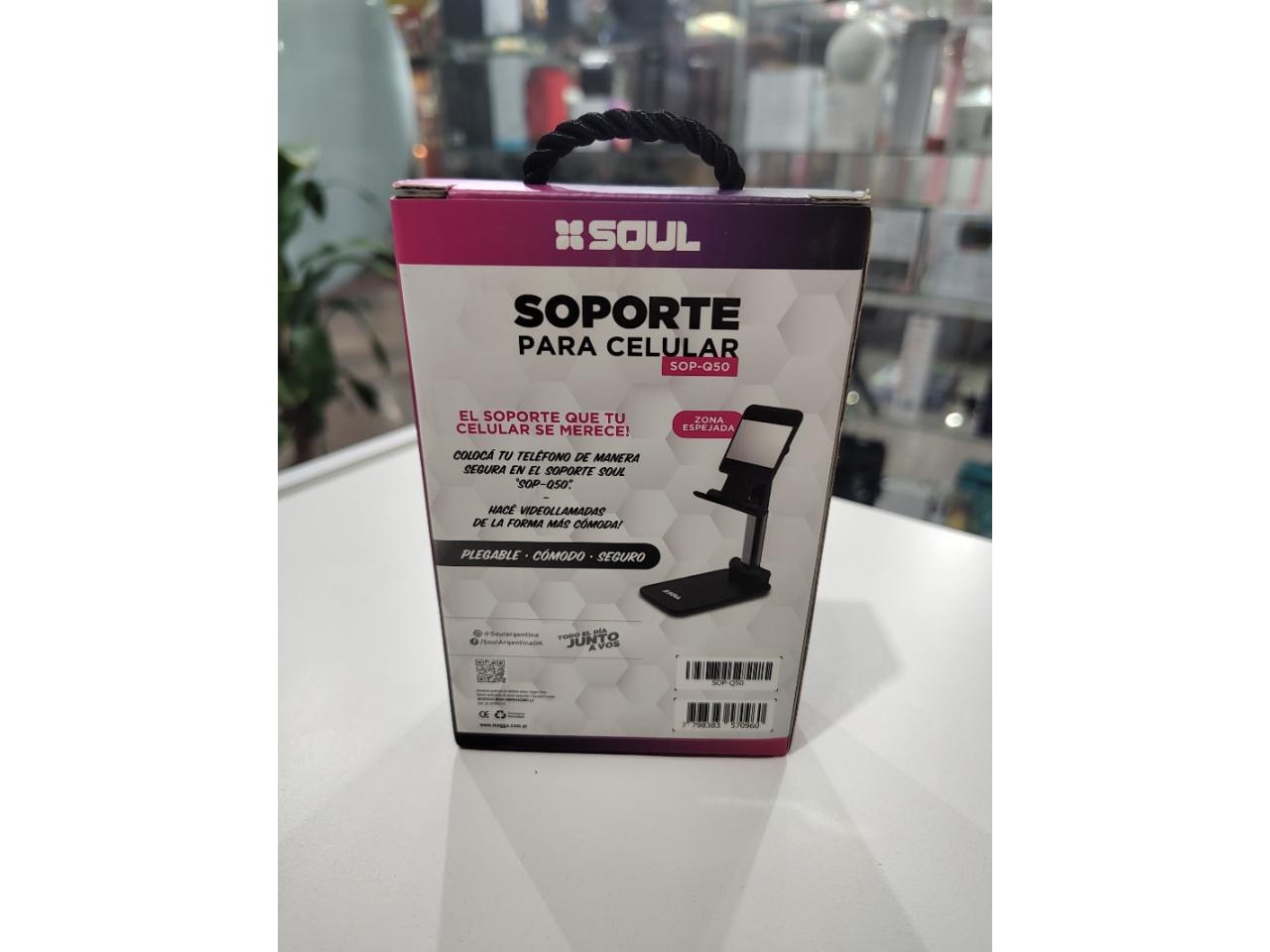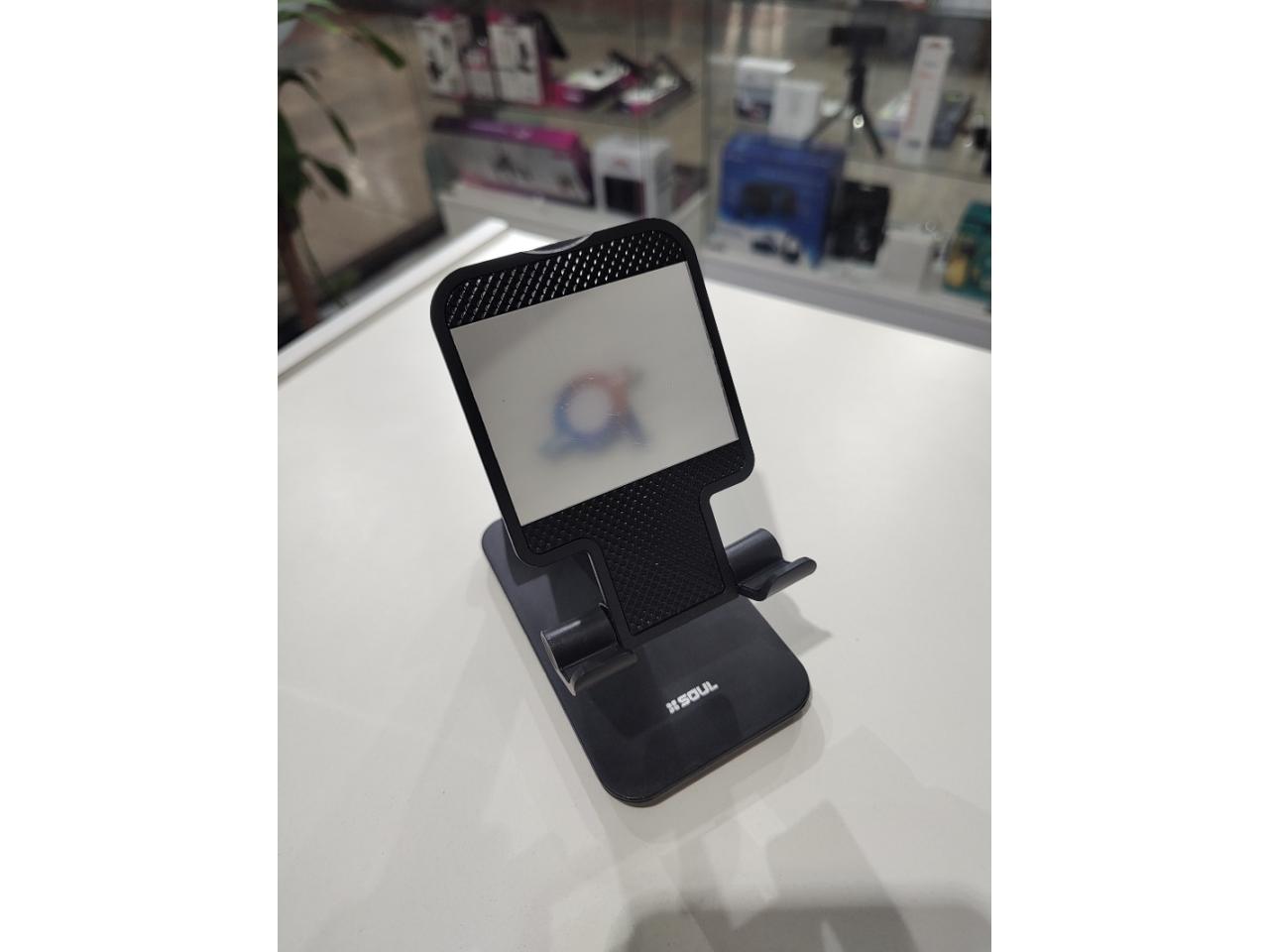 Soporte para celular con espejo, plegable, regulable en altura y posiciones.