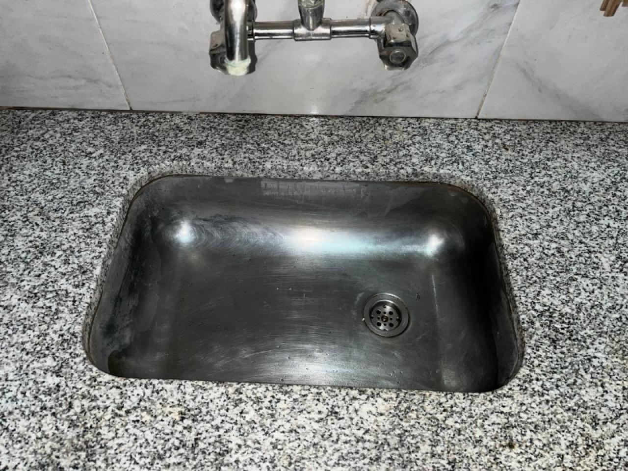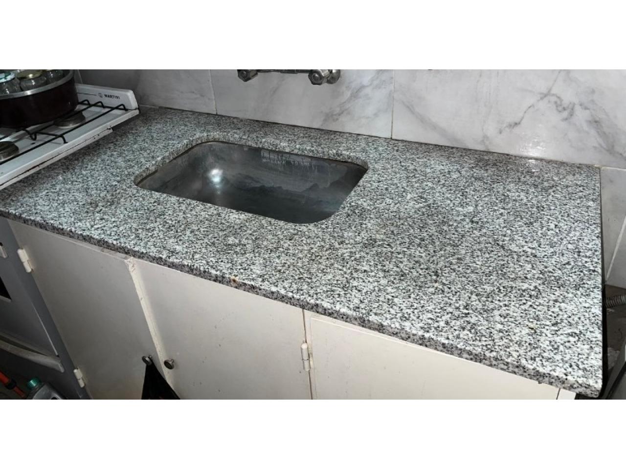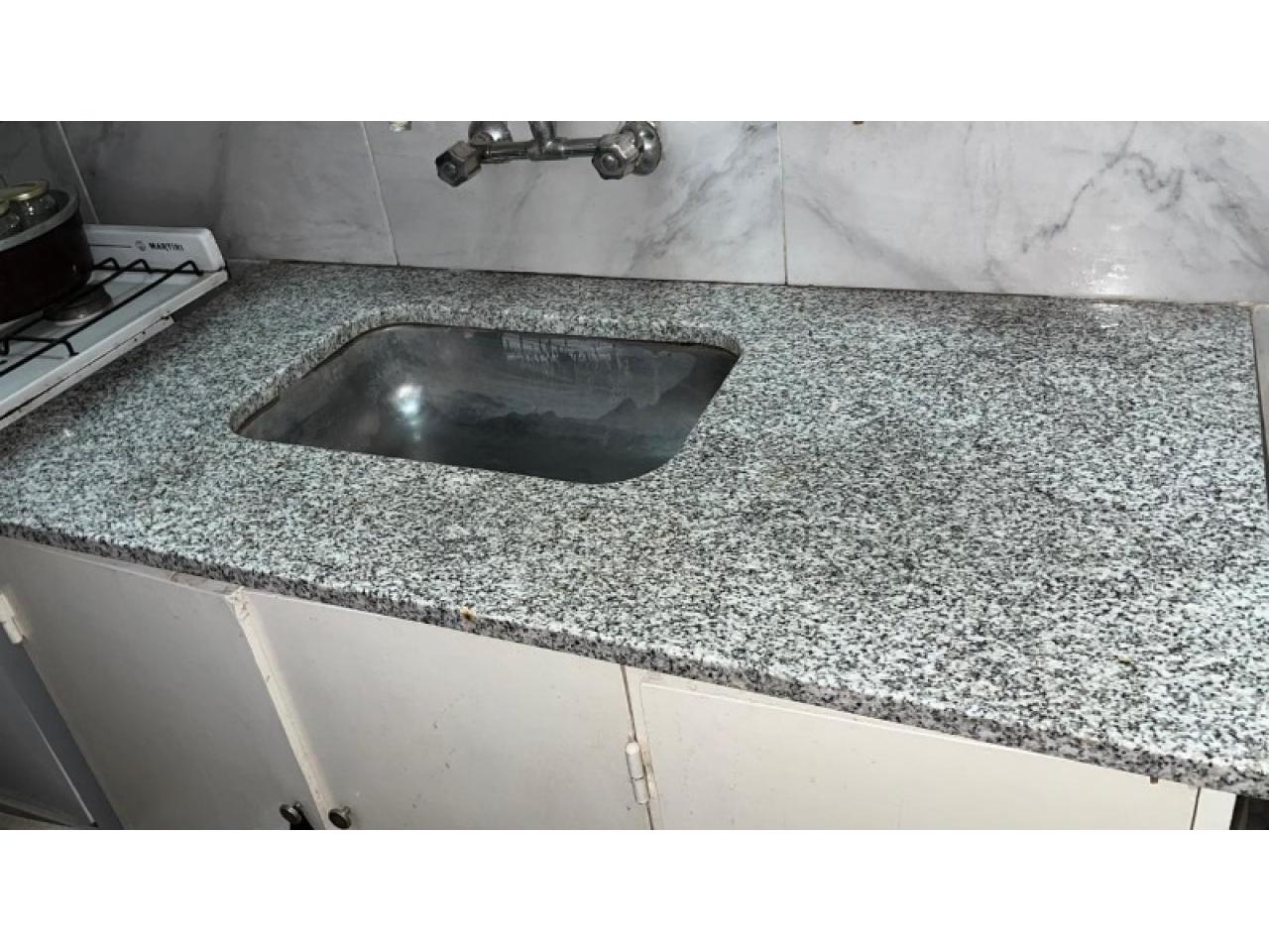 MESADA GRANITO NATURAL GRIS MARA 1,20m x 0,60m CON BACHA DE ACERO INOXIDABLE DE 51x32x15, EXCELENTE ESTADO