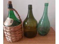 Damajuana De Mimbre Y Dos Botellas De Vidrio