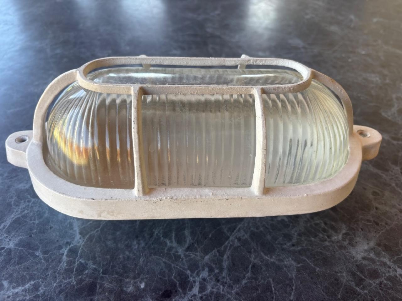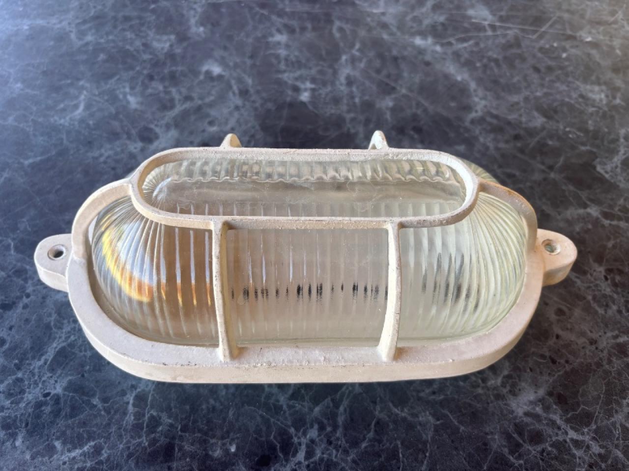 Aplique artefacto tipo tortuga oval, material: aluminio y vidrio. Hasta 60 Watts.
