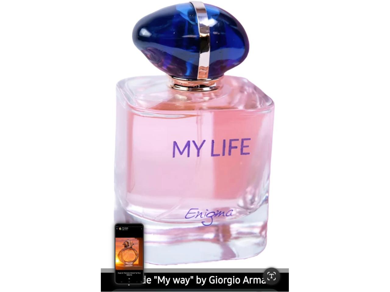 Perfumes dupes de importados: "Chance Eau Tendre" by Chanel, "My Way" by Giorgio Armani, "Olympea" by Paco Rabanne, "Angel Nova" by Thierry Mugler, "La Vie EstBelle" by Lancome, "Narciso Poudree" by Narciso Rodriguez, "Scandal" by Jean Paul Gaultier.