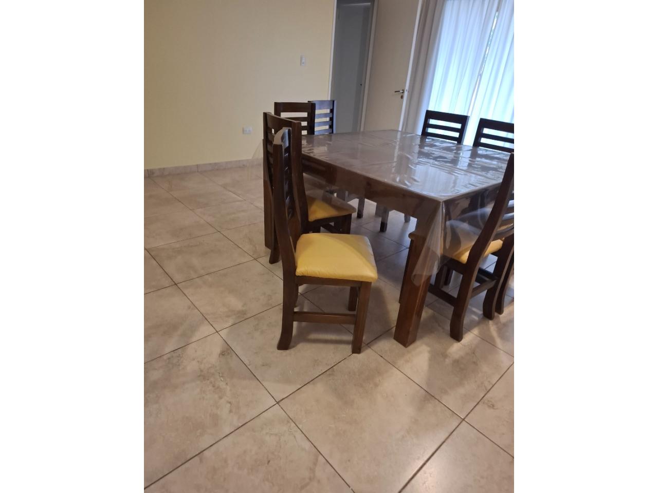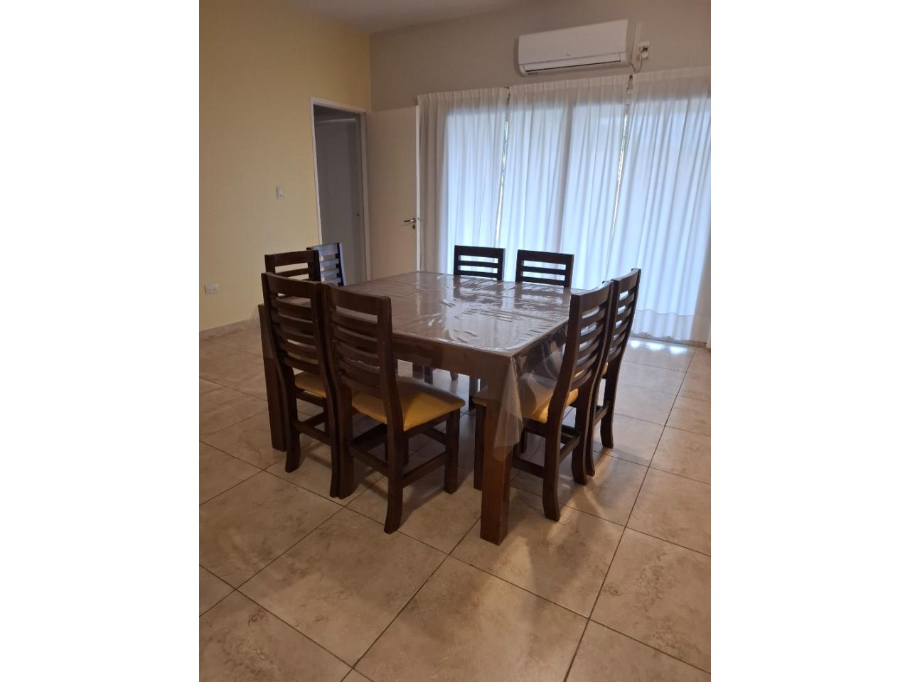 1 mesa cuadrada de comedor con 8 sillas de pino lustrado 350000