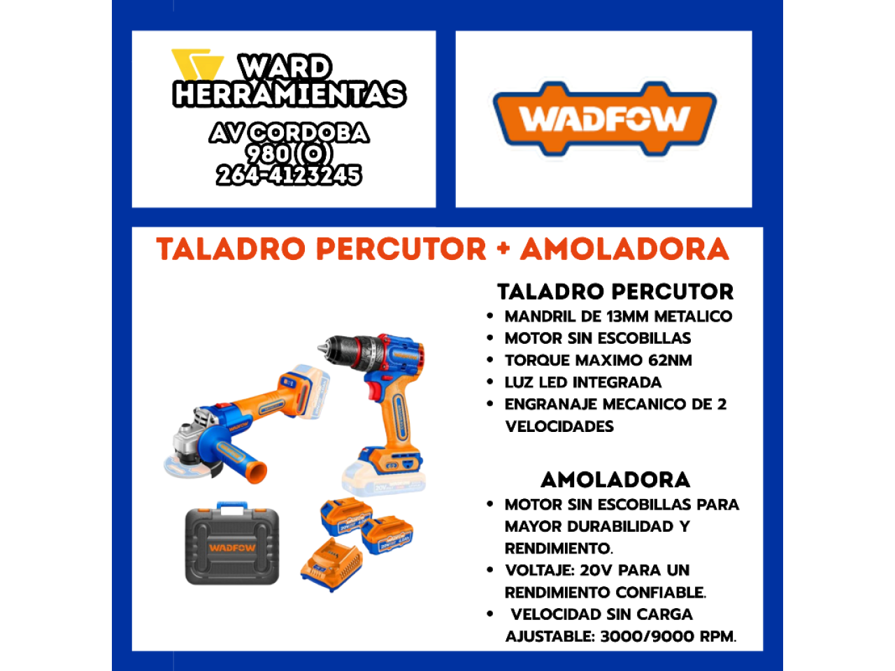 Taladro Percutor Atornillador 62Nm 20V Wadfow