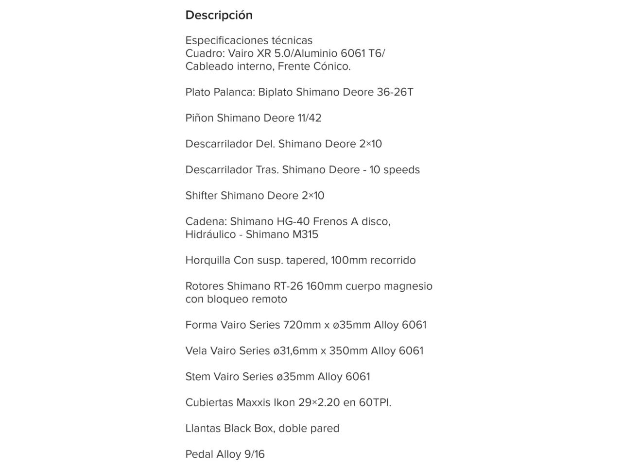 Vairo Xr 5.0 Rod 29 Muy Linda Poco Uso Accesorios Shimano Acera
