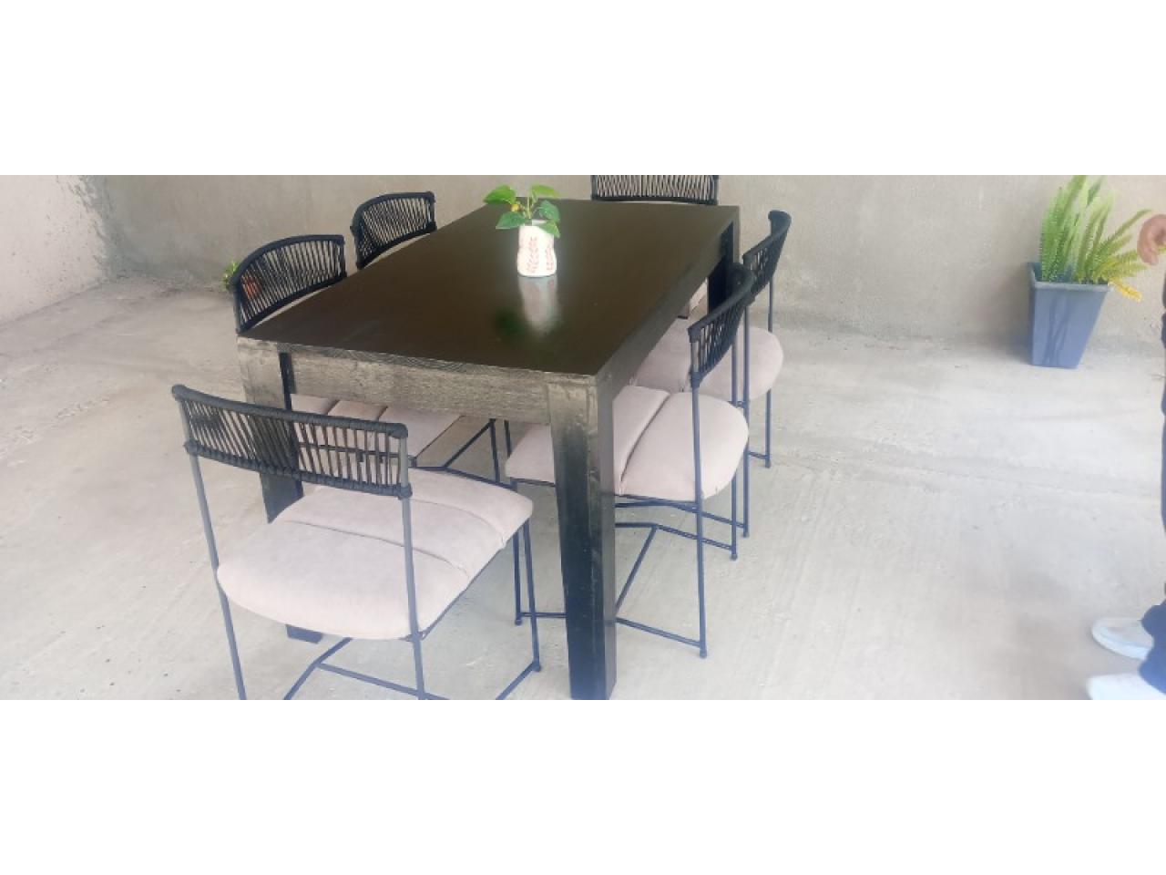 Juego Alcázar realizando en hierro macizo! 6 sillas tapizadas en chenille antimanchas! Mesa madera 1,40x 0.80!