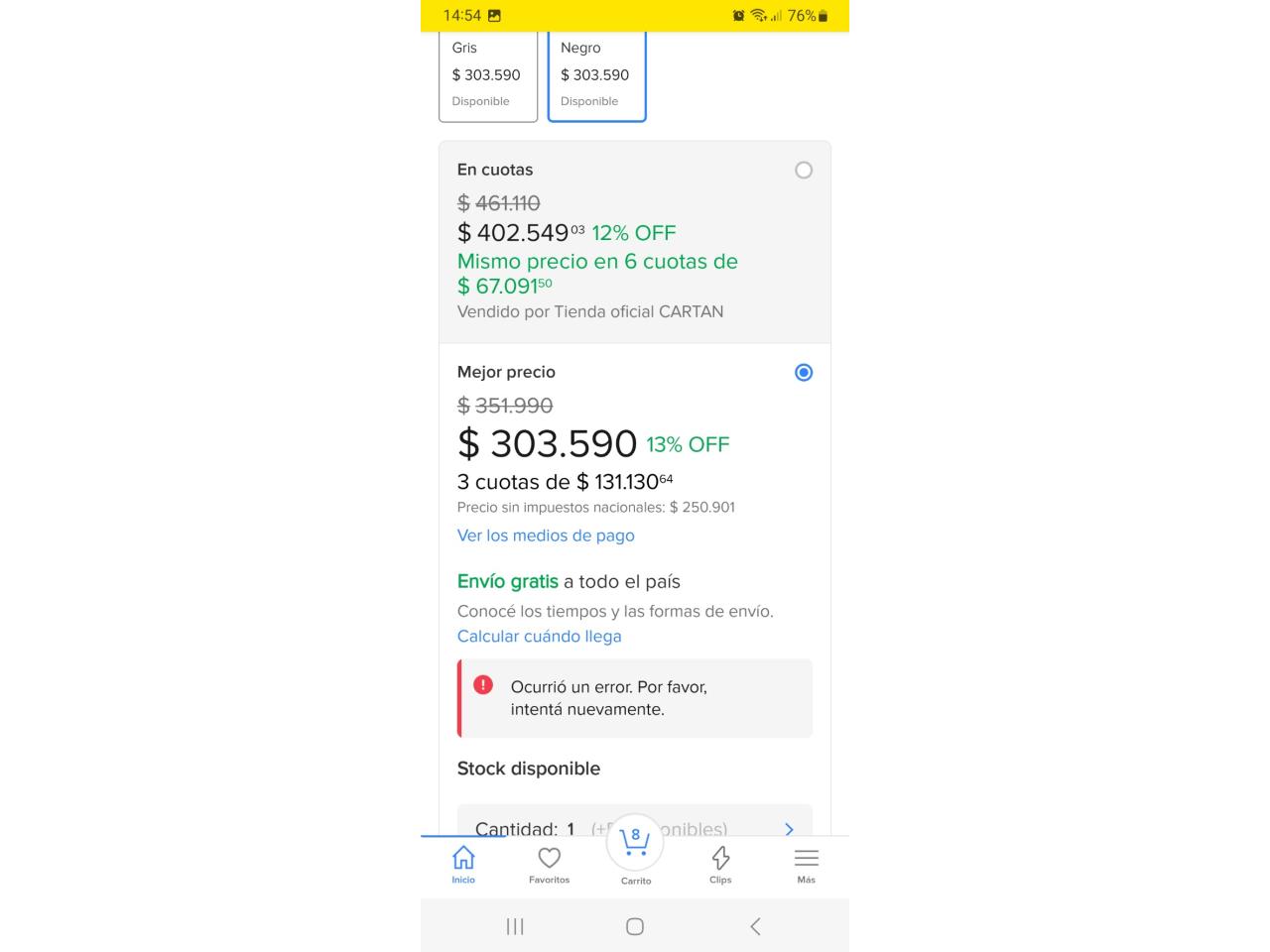 Contado o tarjeta