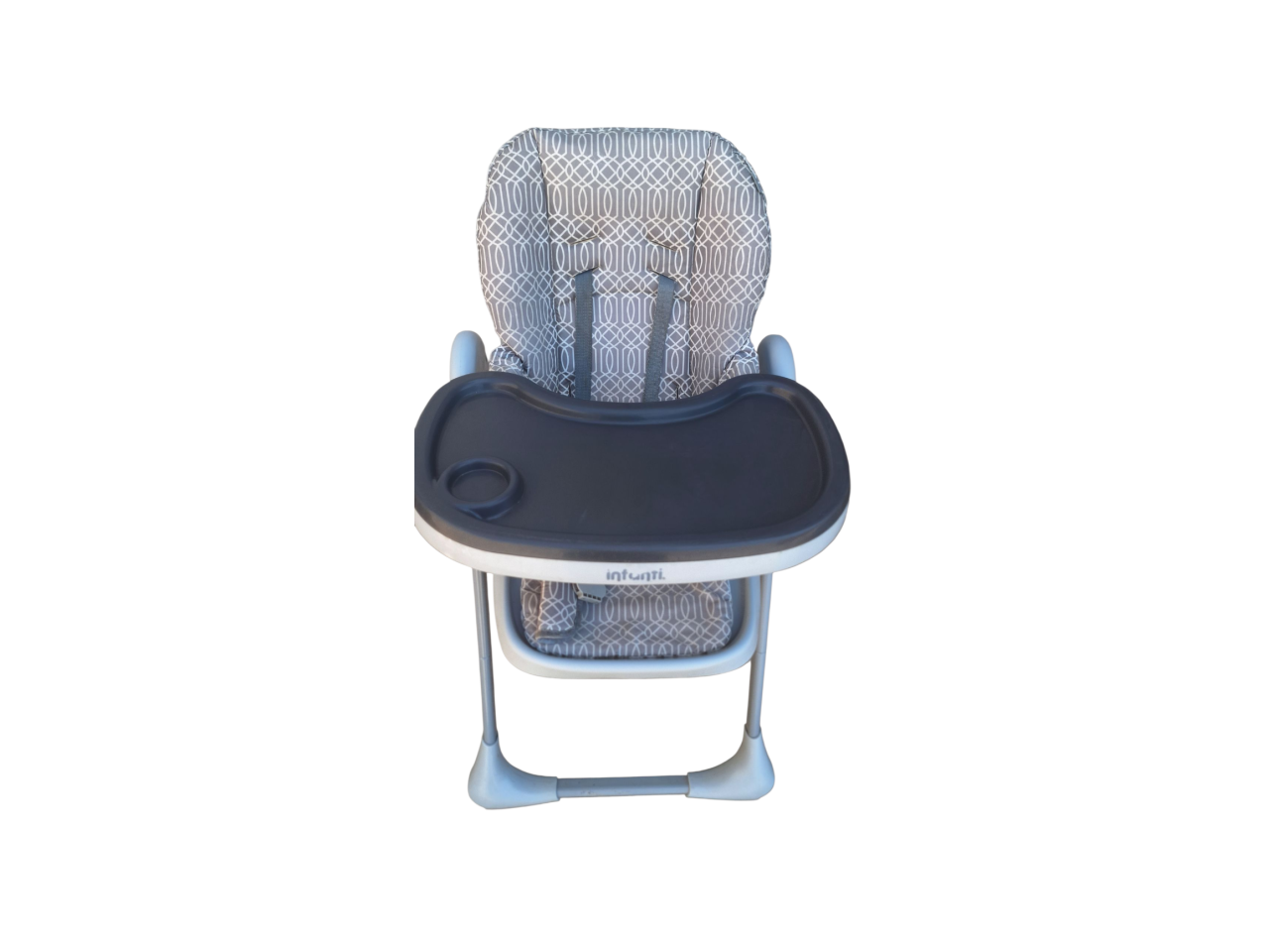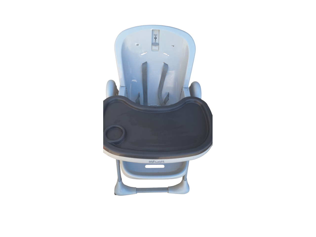 Silla para comer de bebés marca INFANTI en perfecto estado. La estructura de la silla está en excelente estado, pero la funda protectora está dañada por el uso, se entrega para que se coloque una funda a gusto encima de la misma usando el molde original.