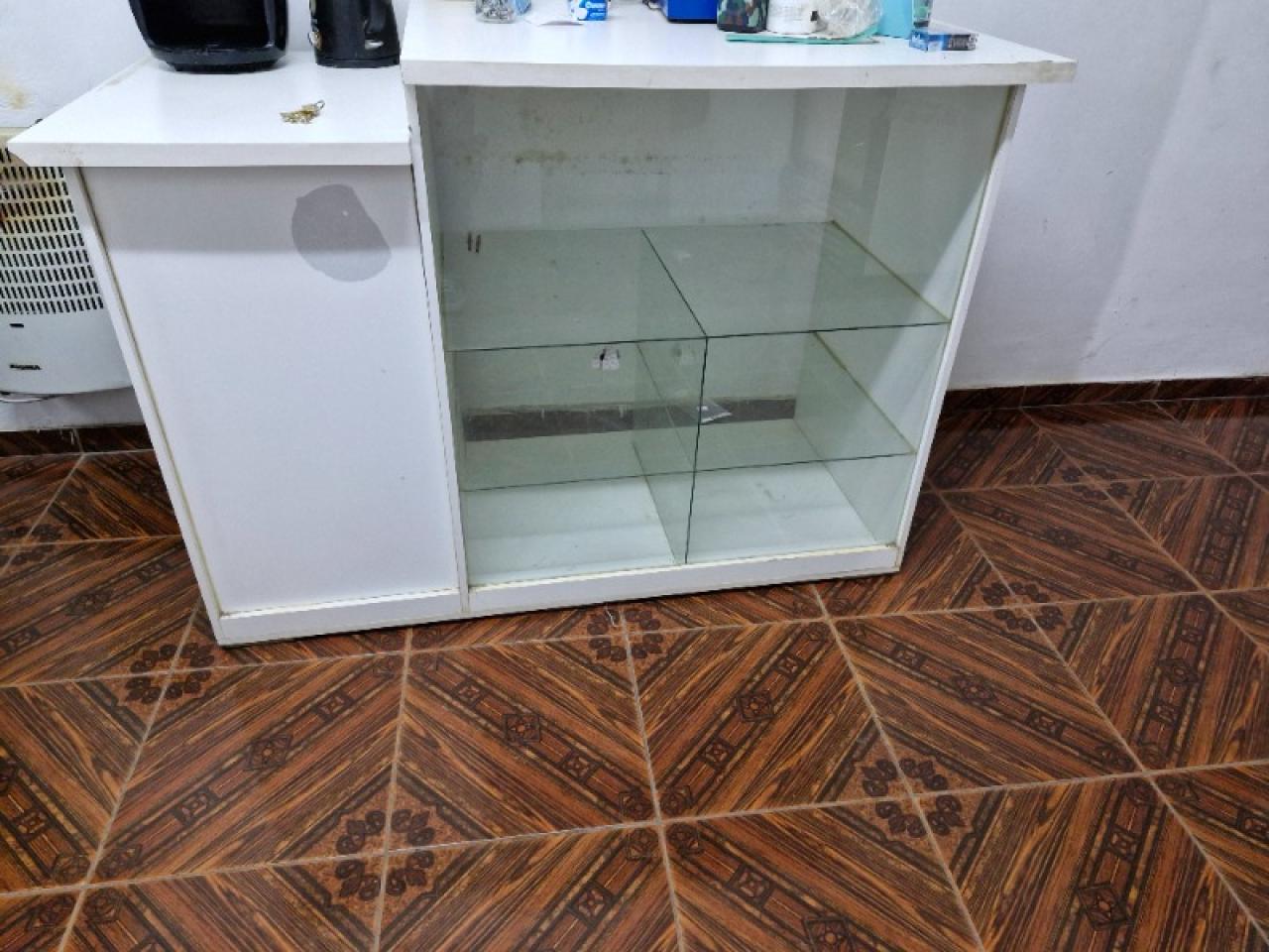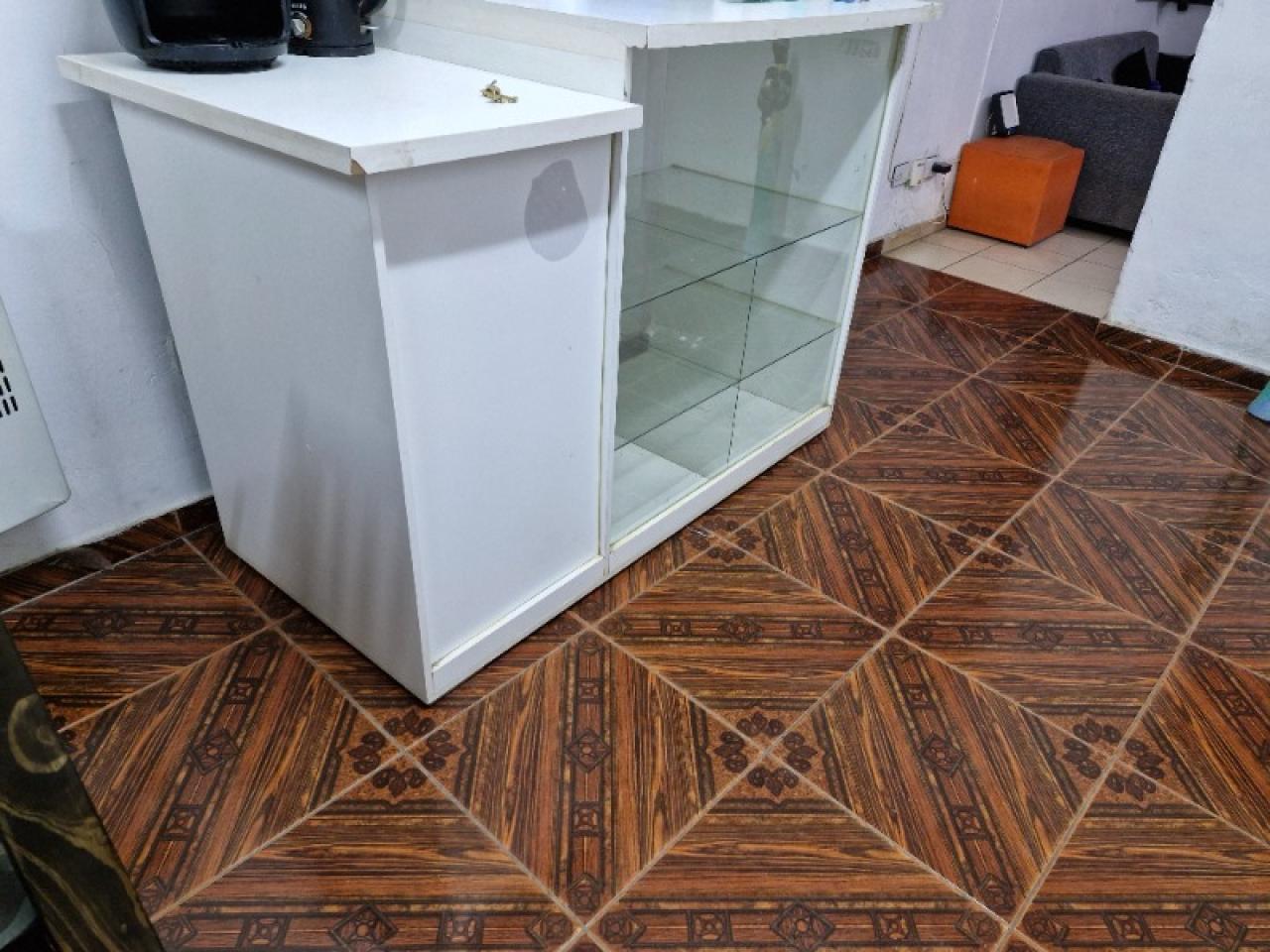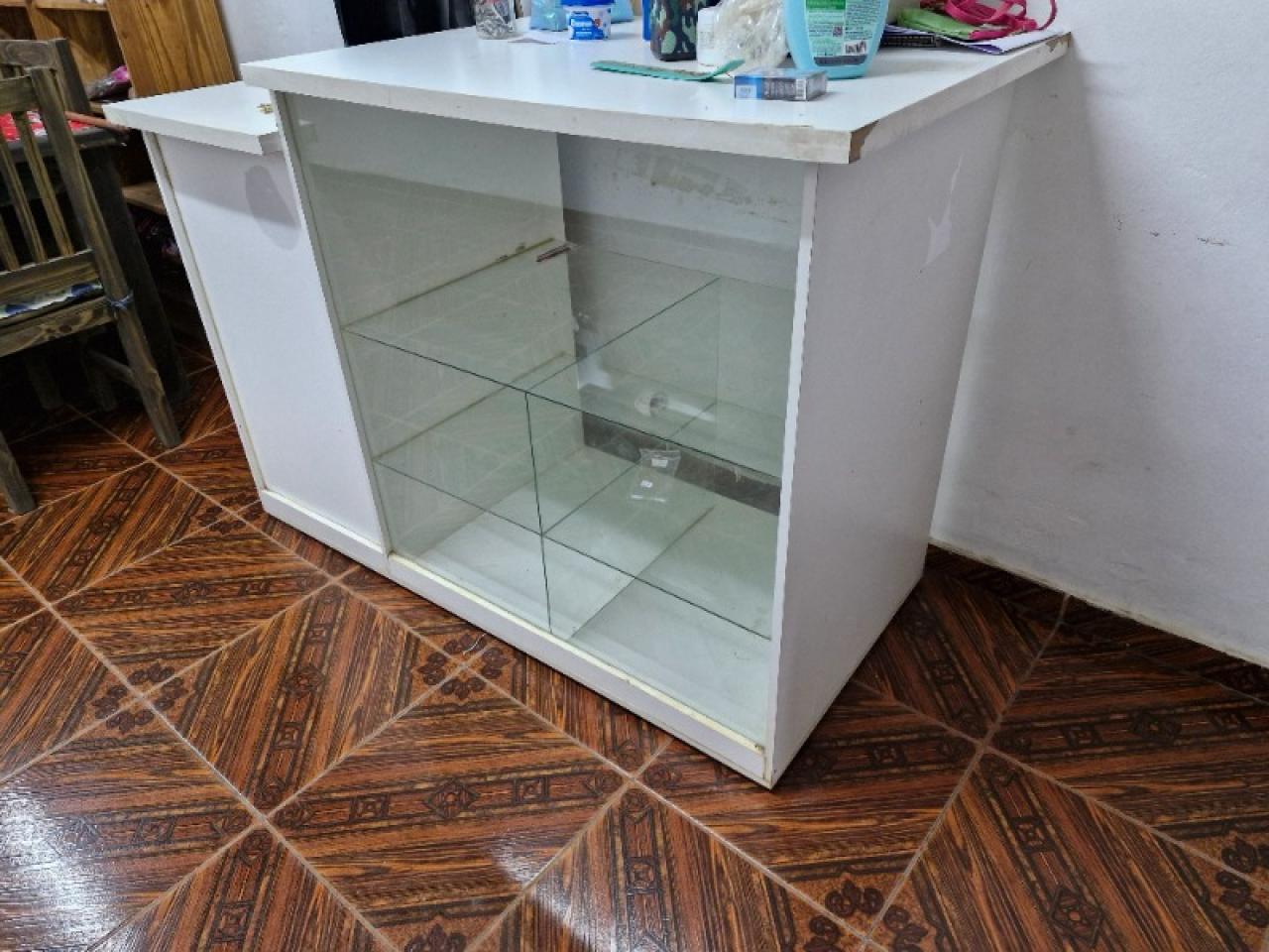 Mostrador blanco estructura de madera frente vidriado ideal mercería,despensa,regaleria..nuevo!!!!!