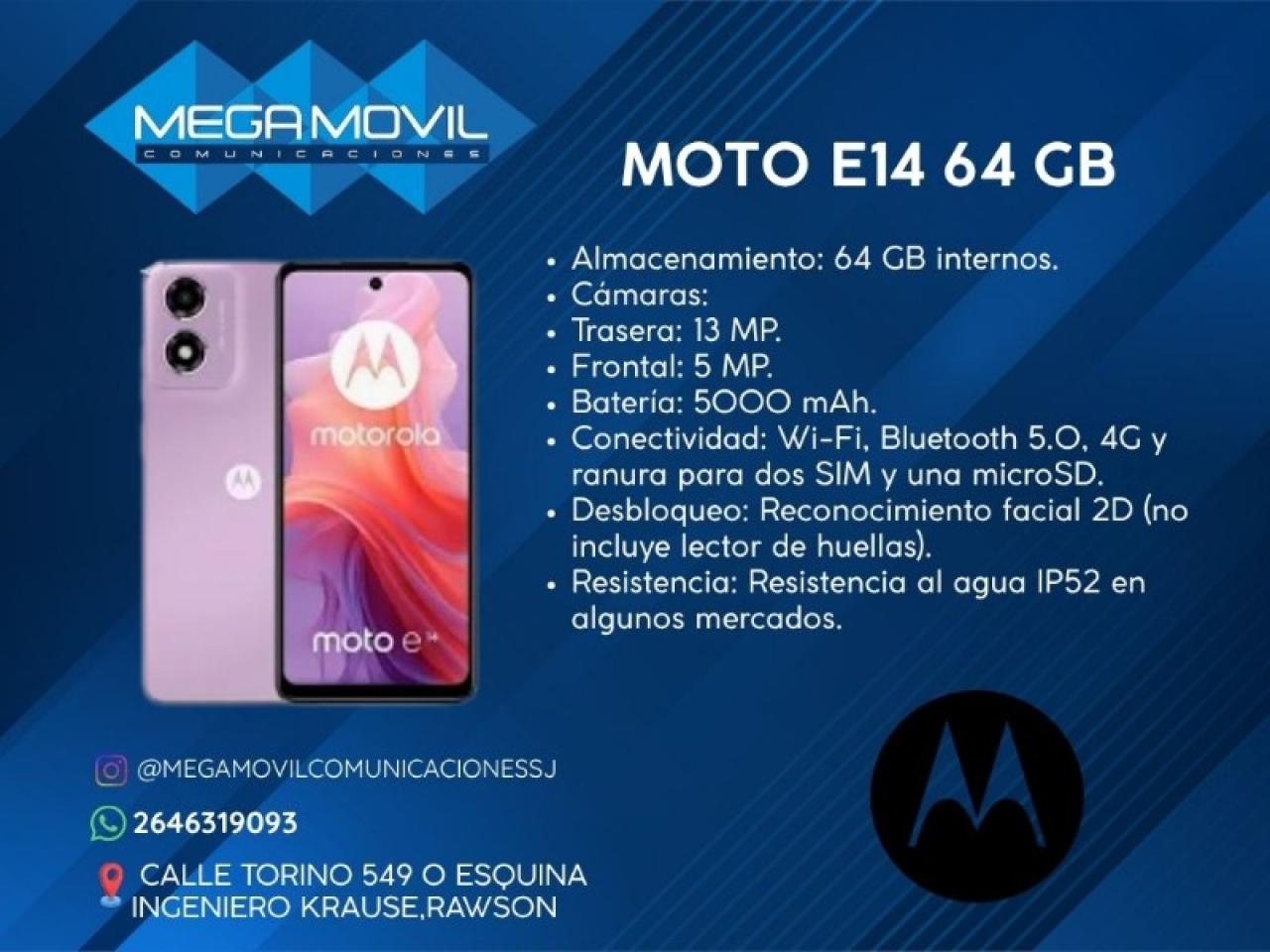 Celular Motorola Moto E14 64 Gb De Memoria Por 4 De Ram Expandible 120 Gb