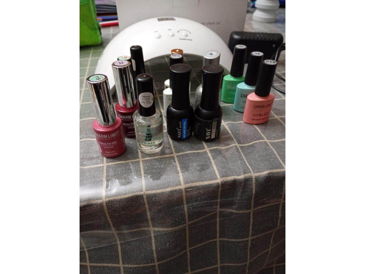 Lampara para uñas semipermante + cargador + base primer las varano + base gel y top gep NAVi+ 10 esmaltes incluidos blanco , negro , plateado, dorado , rojo , rosa, verde y celeste.
