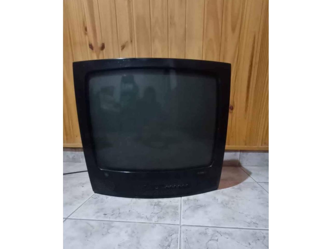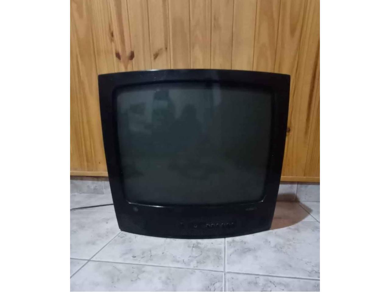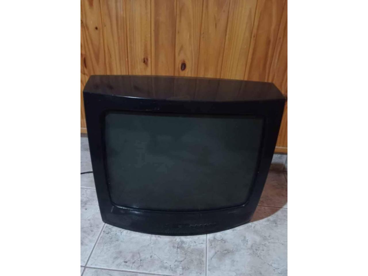 Televisor de color negro, antigüo funcionando. Muy bien estado, funcionando con control remoto. Digno de ver.