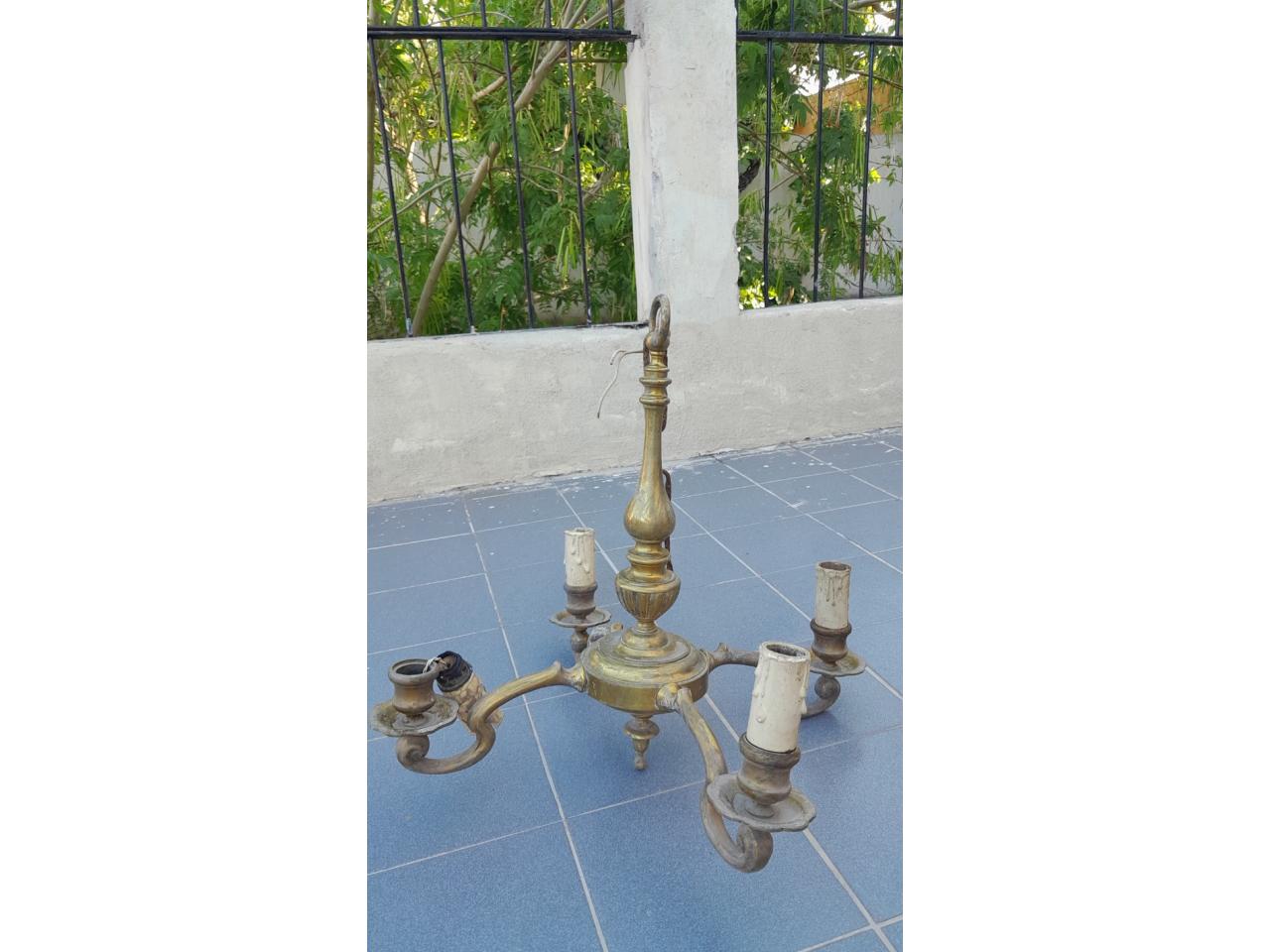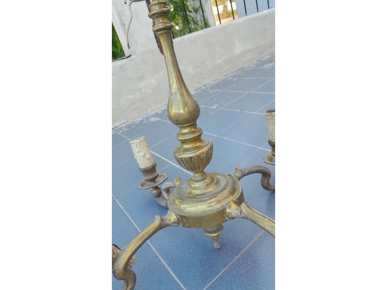 Lampara De Pie Bronce Macizo Antigua Labrada