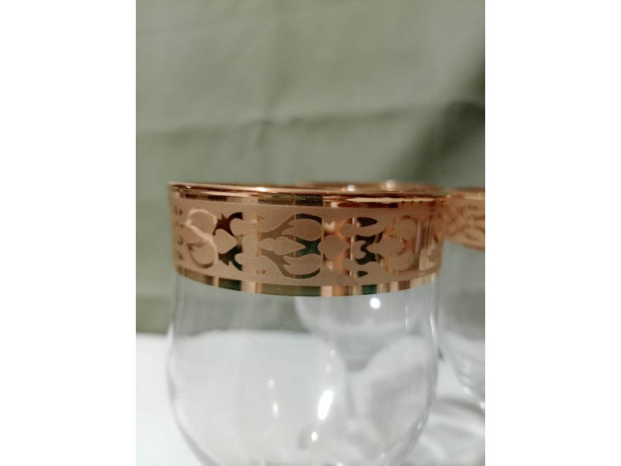 Fino juego de vasos cristal, con borde decorativo de oro, hecho en turquia! ...estilo vintage!!!!