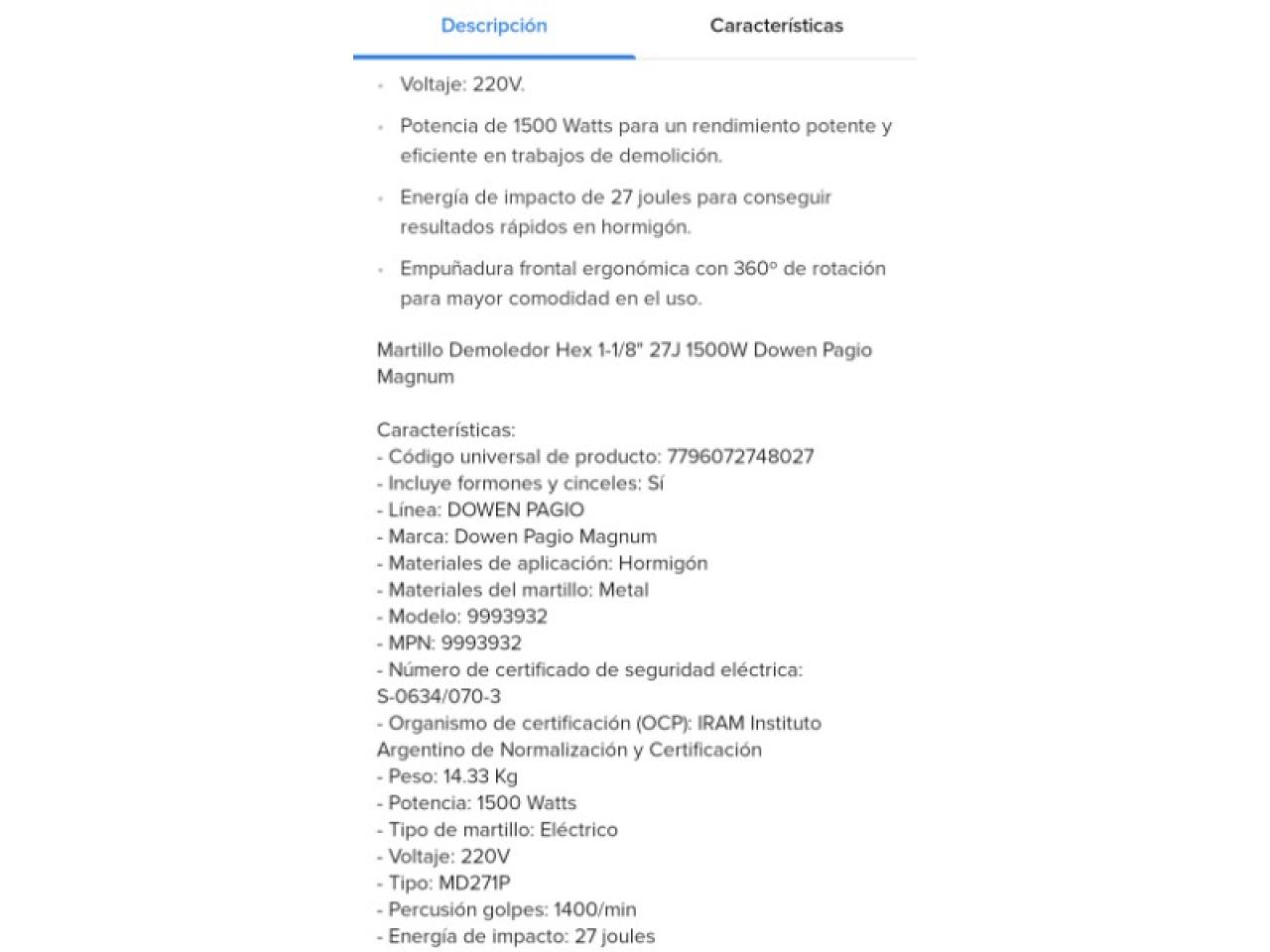 Martillo.Demoledor, buen estado. $260,000. Rivadavia