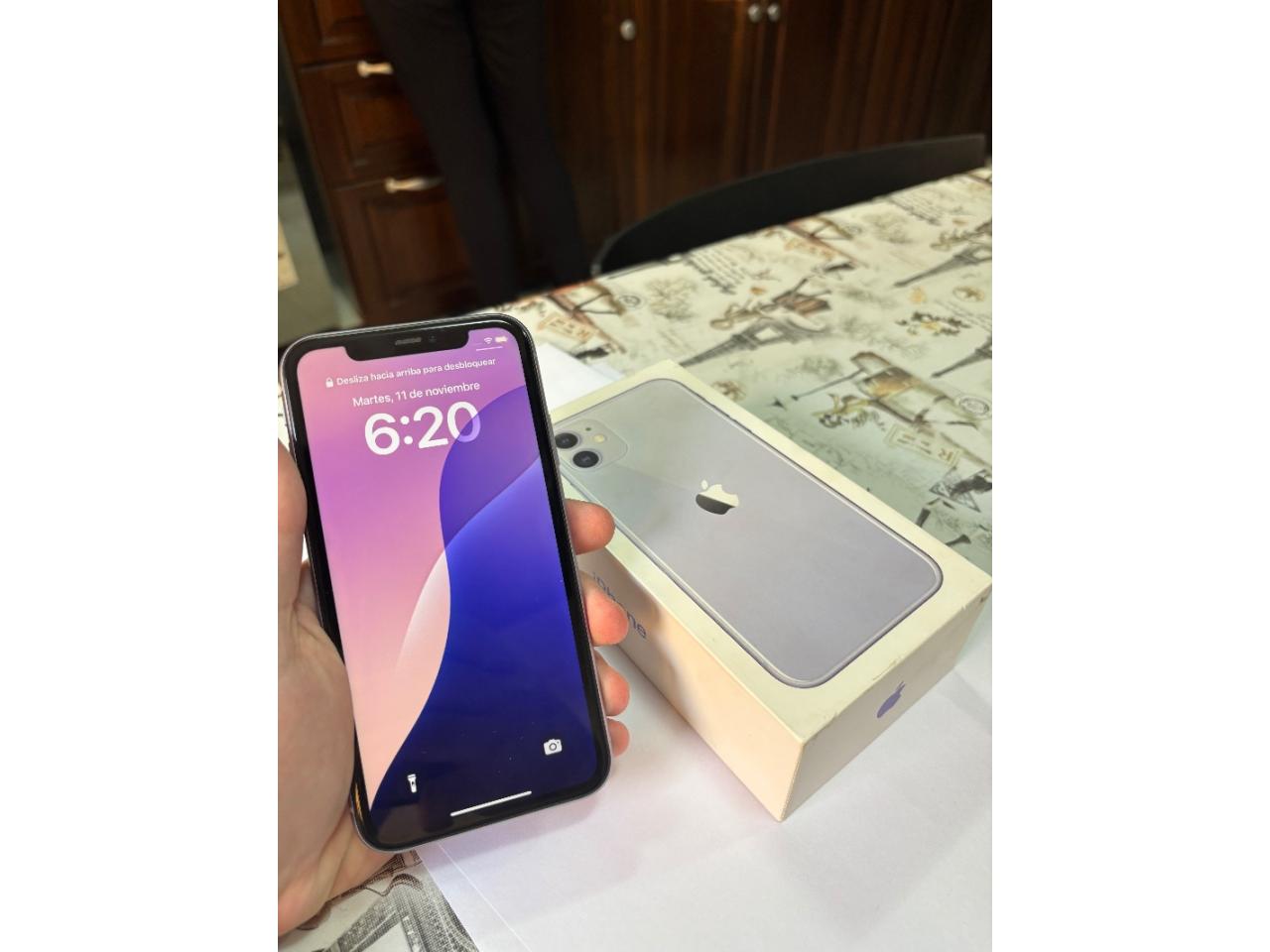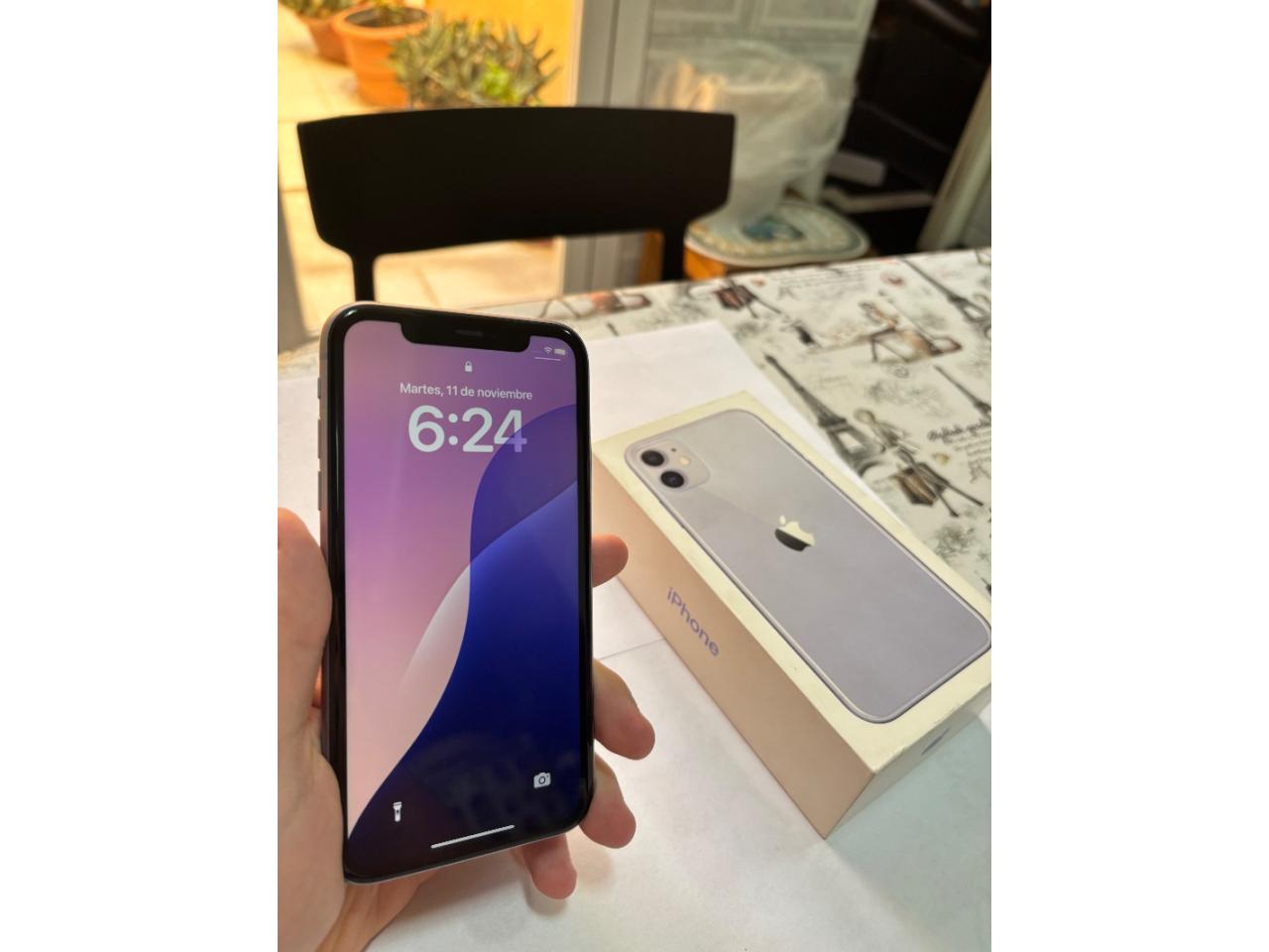 iPhone 11 128gb purple con caja, 71% condición de batería (batería original).