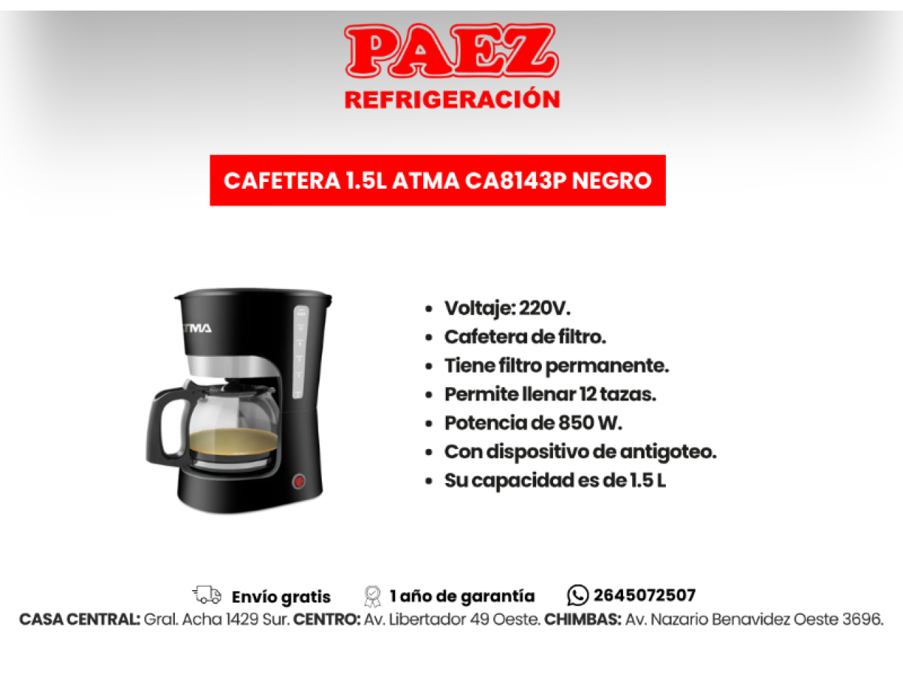 Cafetera 1.25l Whitenblack Acwb01
