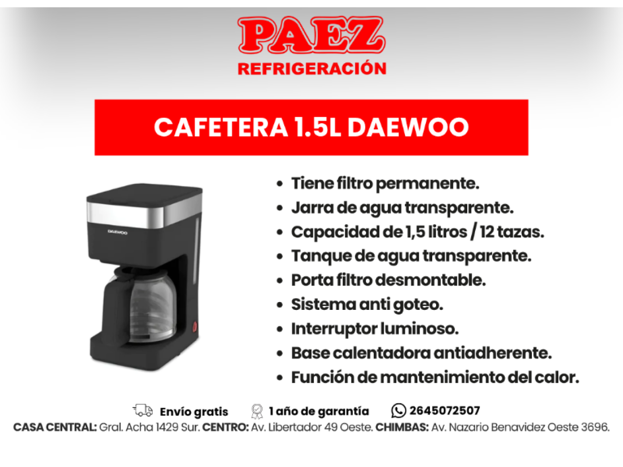 Cafetera 1.25l Whitenblack Acwb01