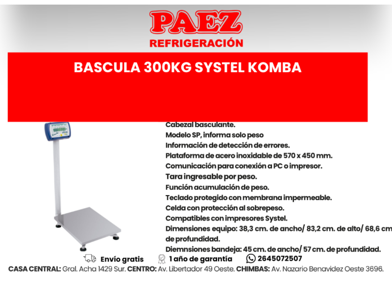 Balanza Systel 30 Kg Cuora Max