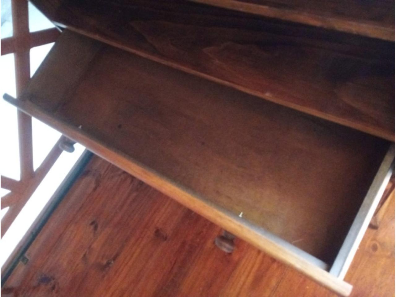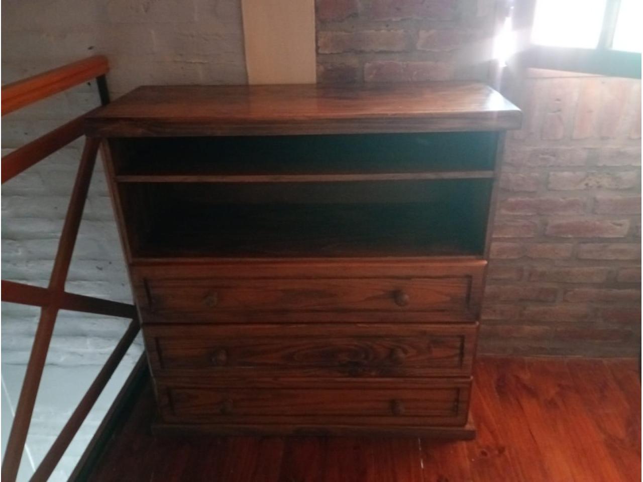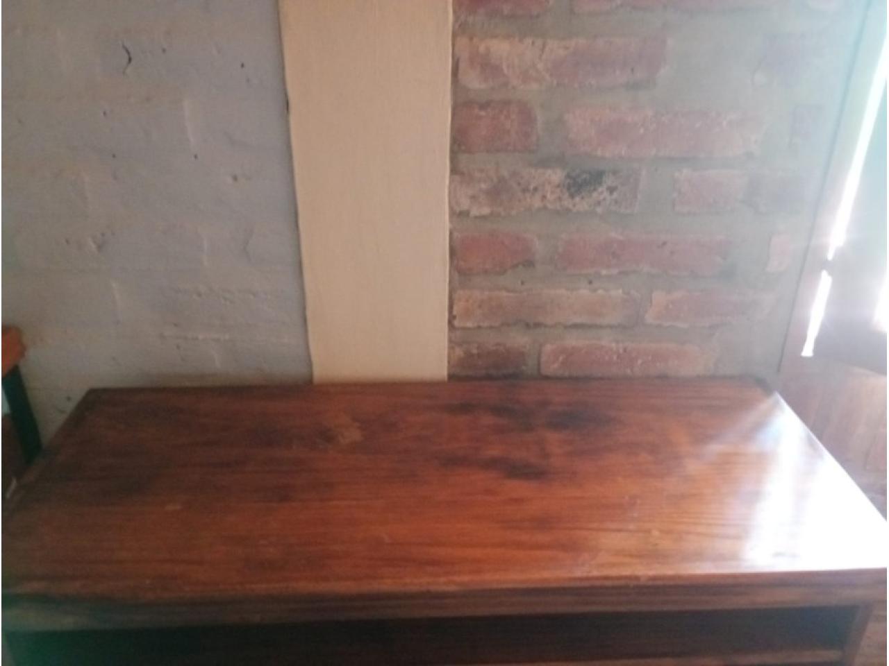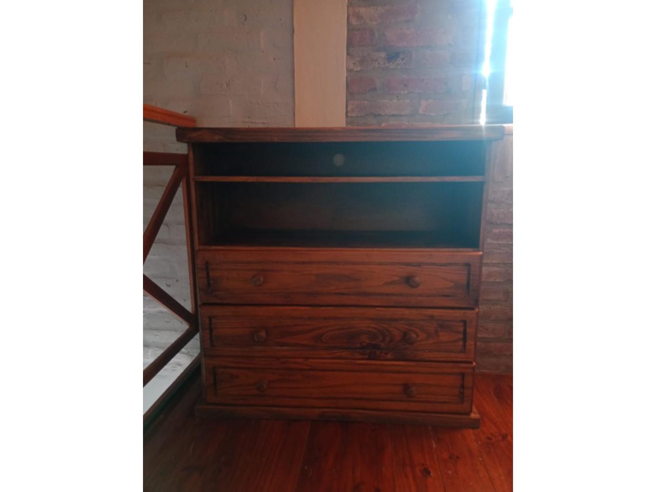 Mesa TV con cajonera paraíso maciza de Mueblería El Rural. Lustre intermedio a renovar. Excelente estado