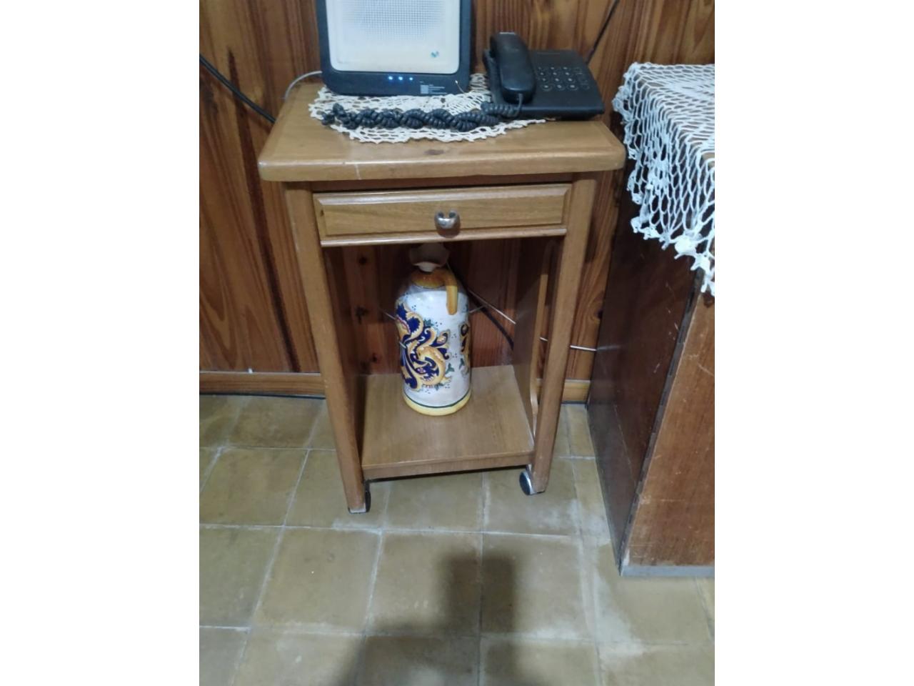Mesita alta de madera de roble. Ideal para esquina del living para lampara, libros o WiFi. Con cajón cito para guardar boletas.
