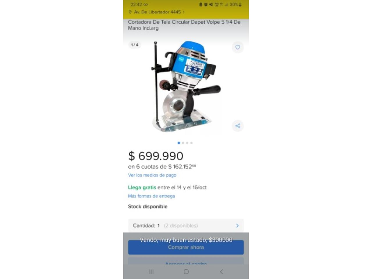 CORTADORA DE TELA CIRCULAR MARCA DAPET VOLPE 5 1/4