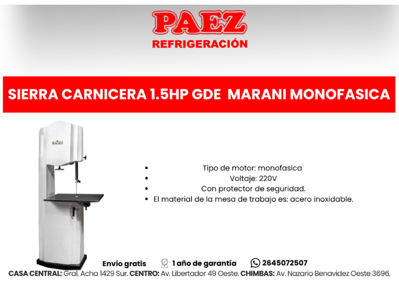 Sierra Carnicera Con Picadora De Carnes Mod. Hi1810cp Hidro- Envío Gratis- Un Año De Garantía