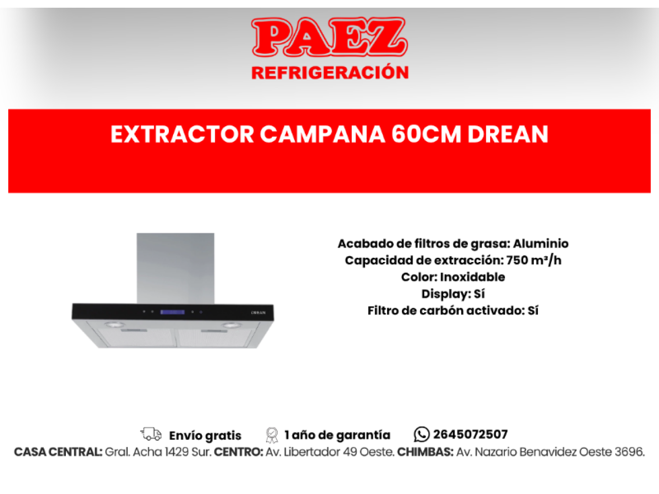 Extractor Campana 60cm Morelli Ferro-800601