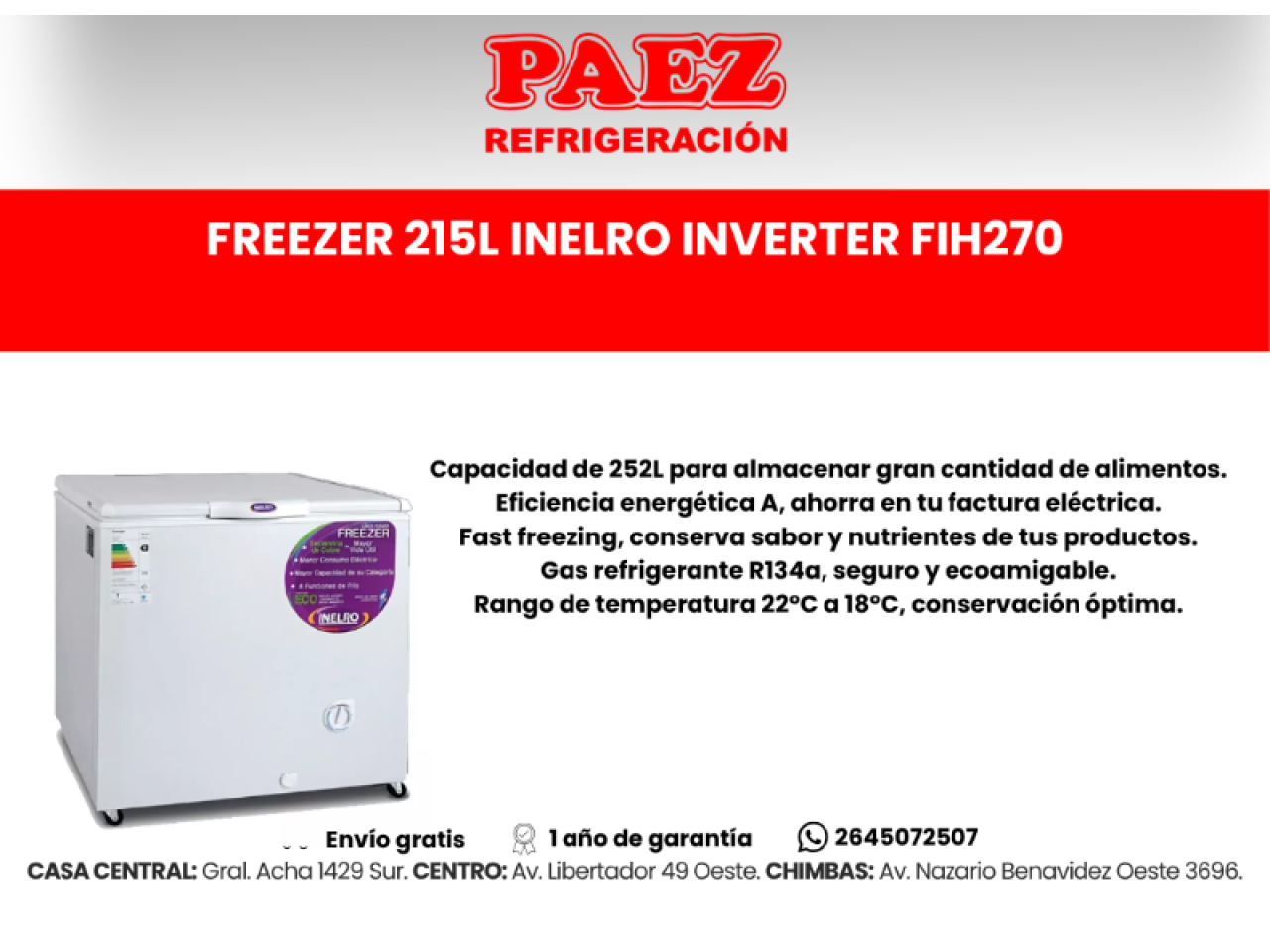 Freezer Tapa De Vidrio 530l Inelro