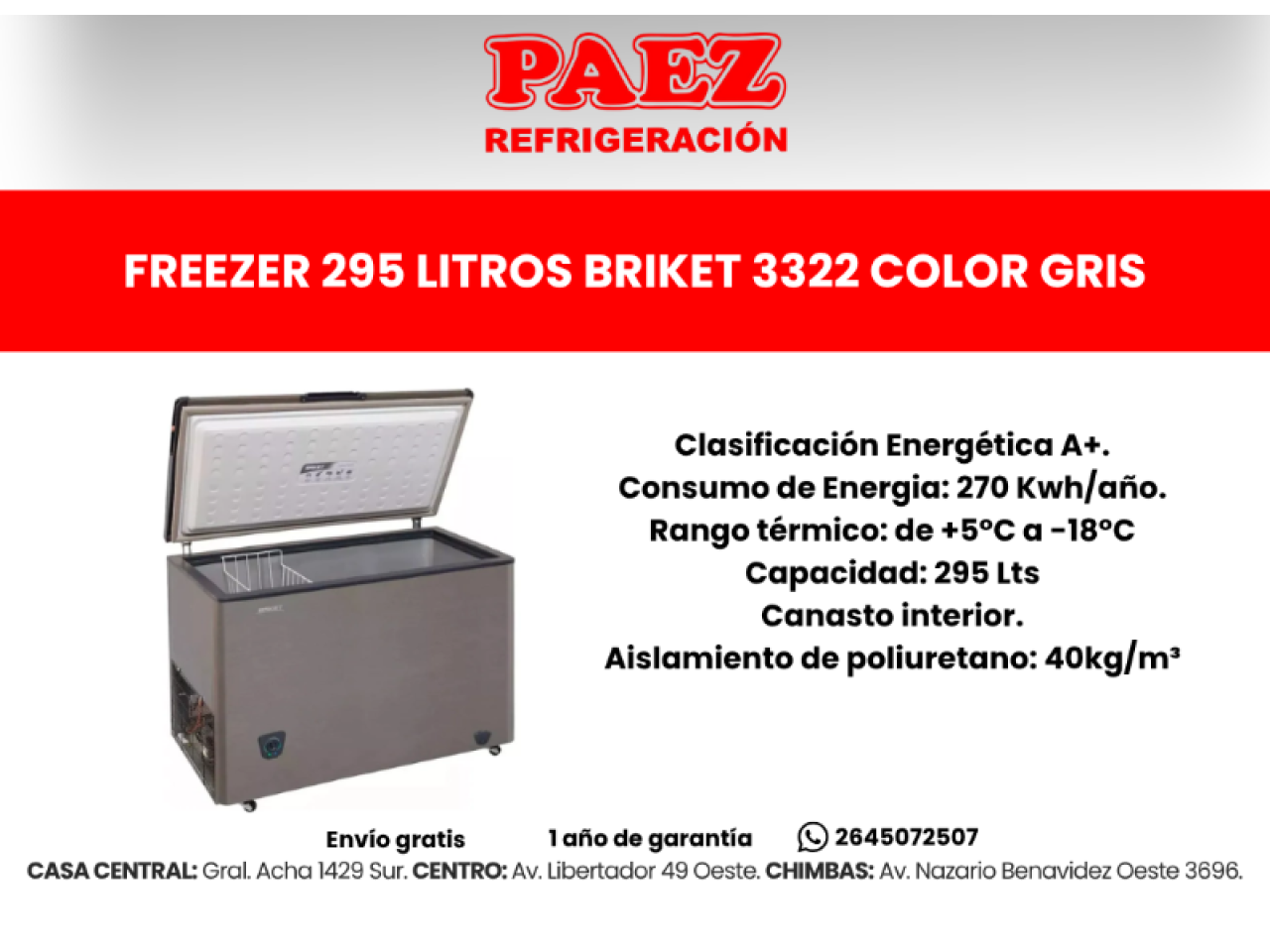 Freezer Tapa De Vidrio 295l Briket
