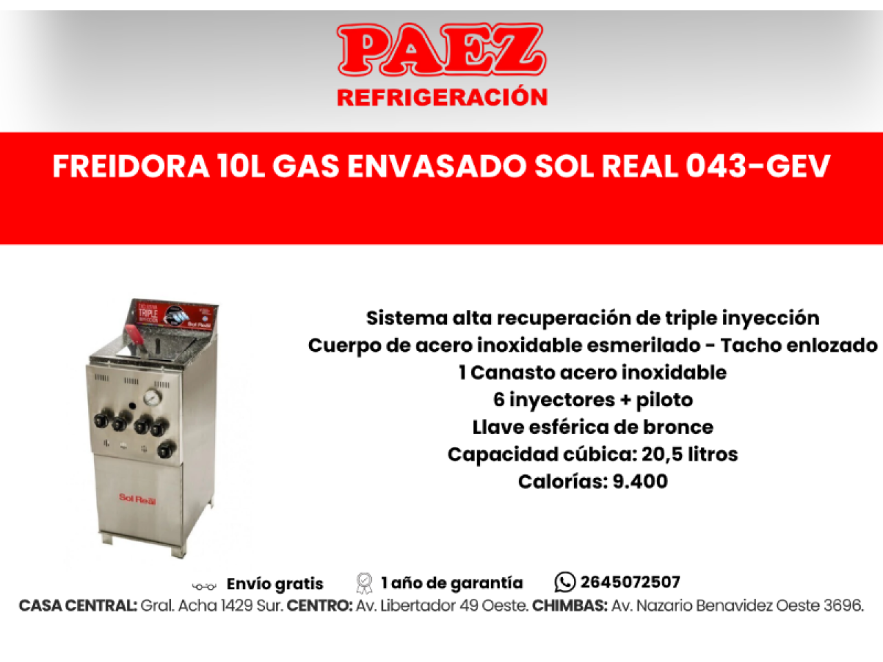 Freidora 42l Sol Real 057- Envios Sin Cargo- Un Año De Garantía