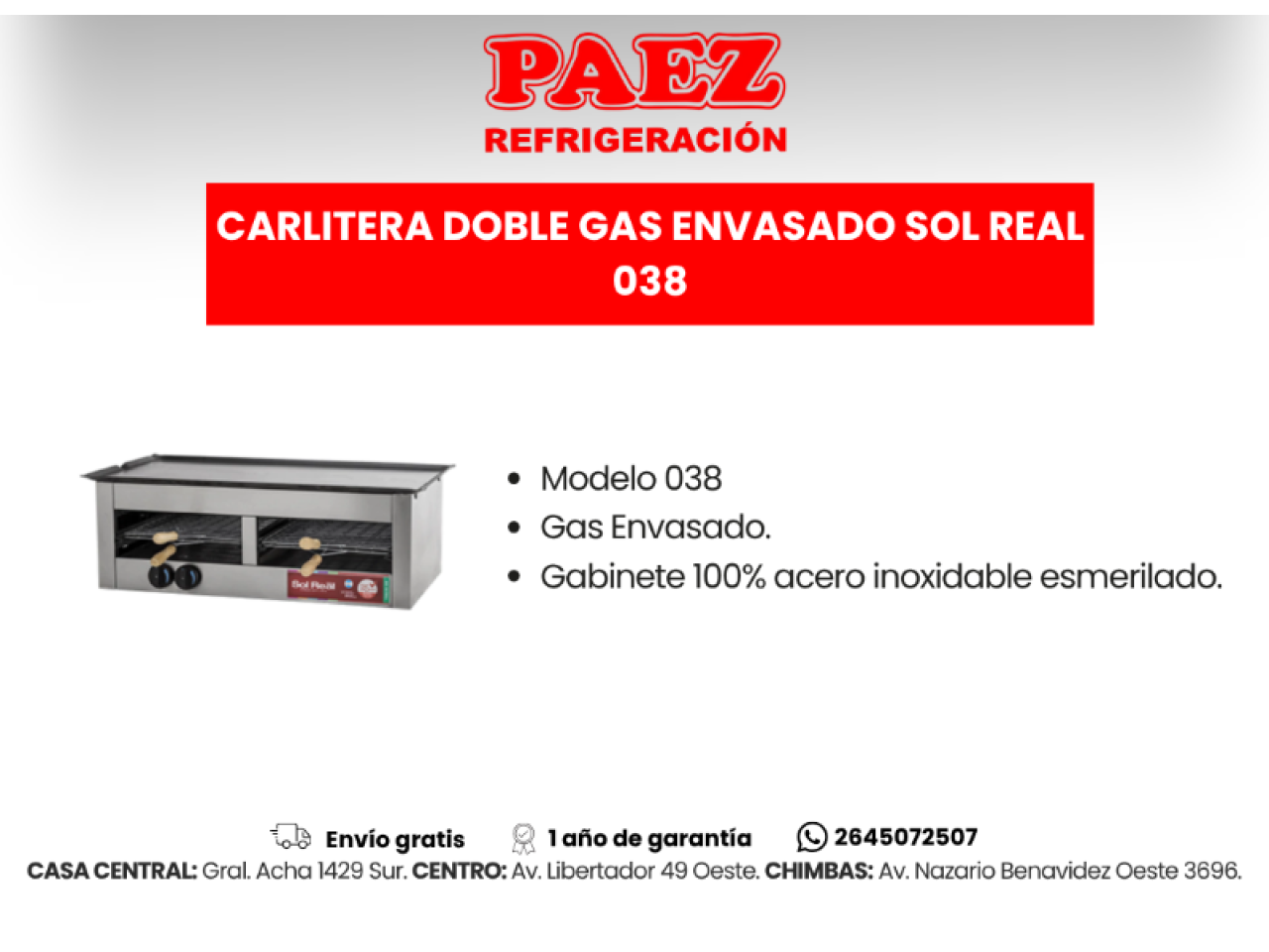 Carlitero Doble Gas Envasado Sol Real Eco 138