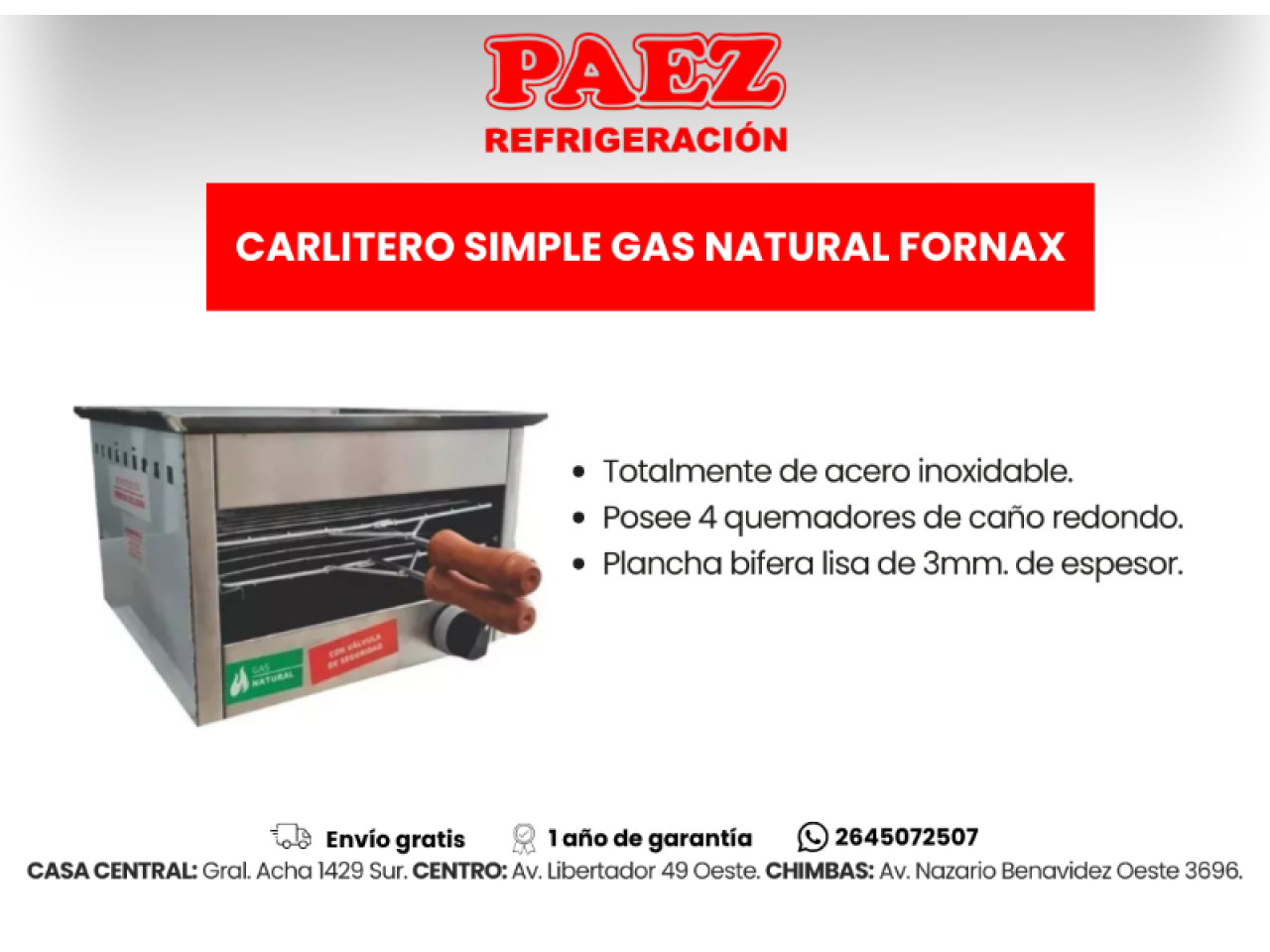 Apto para gas natural o envasado.