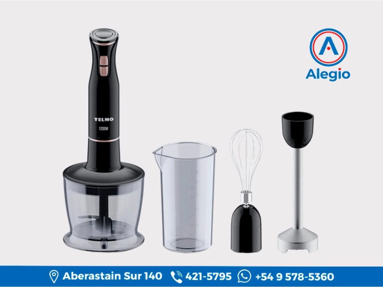 La Minipimer LM-1555 de Yelmo cuenta con un diseño ergonómico, poseé un potente Motor DC de 1200W, contiene 4 Cuchillas de acero inoxidable y tiene 2 Velocidades - Normal y Turbo, trae un vaso licuador/medidor de 800 ml y bol picador de 500 ml. Pie en acero inoxidable soldado para poder licuar alimentos calientes o hervidos, el rargo del cable es de 1,2 mts