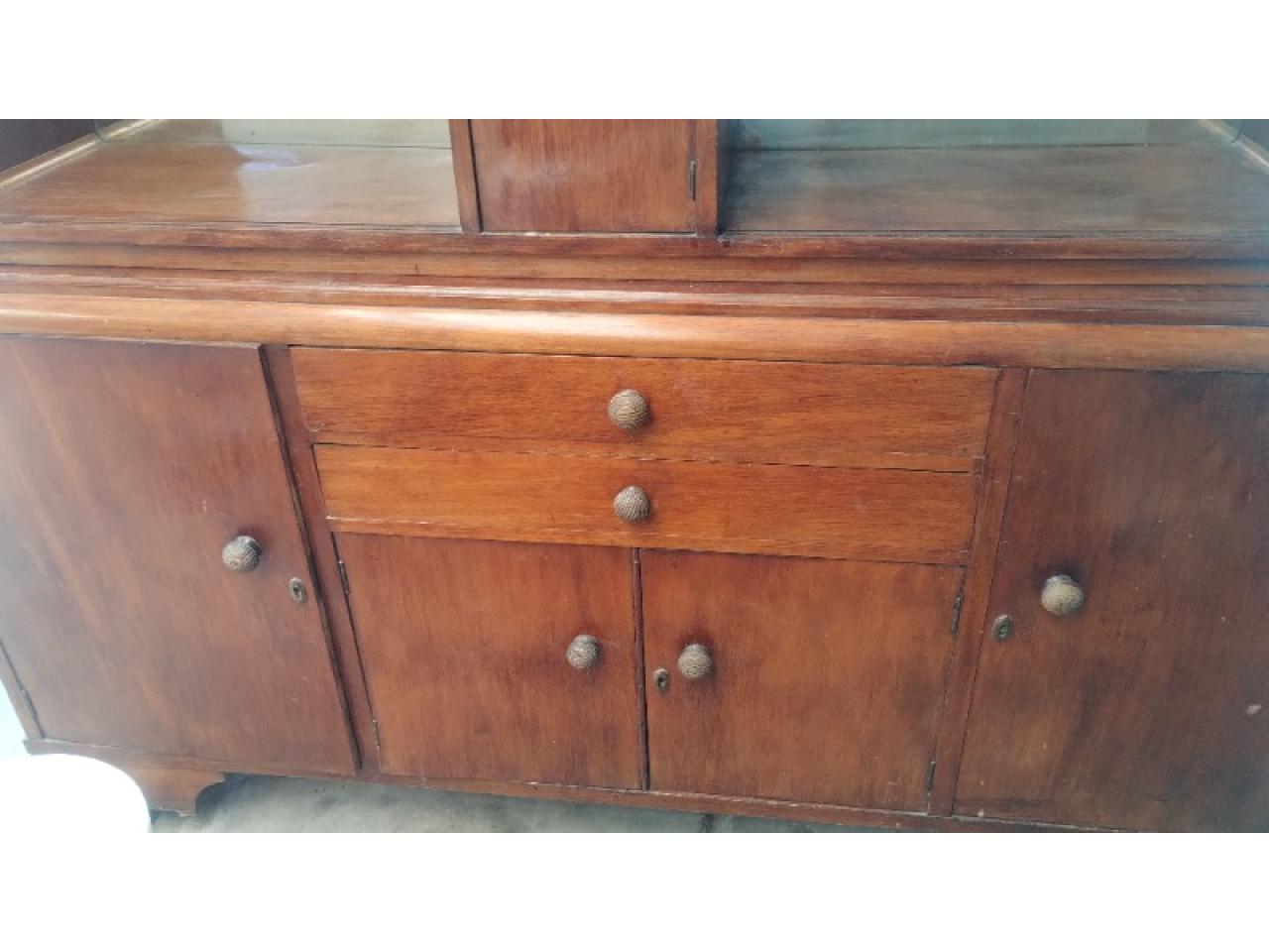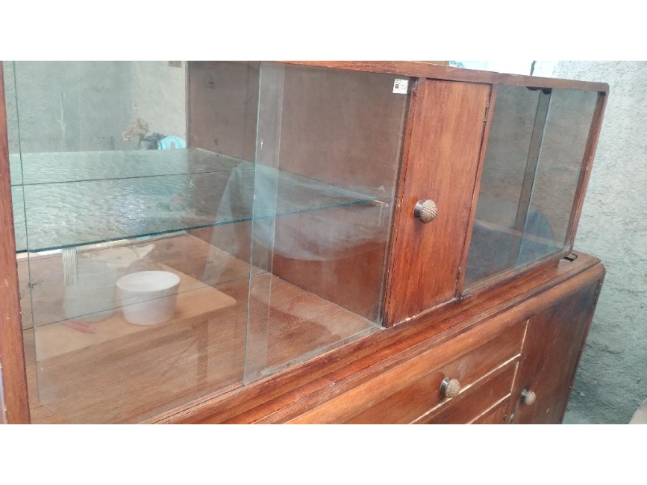 Aparador antiguo en buen estado, con detalle a la vista con estantes de vidrio. Medidas1.97x1,50x50