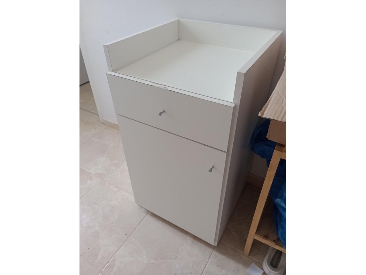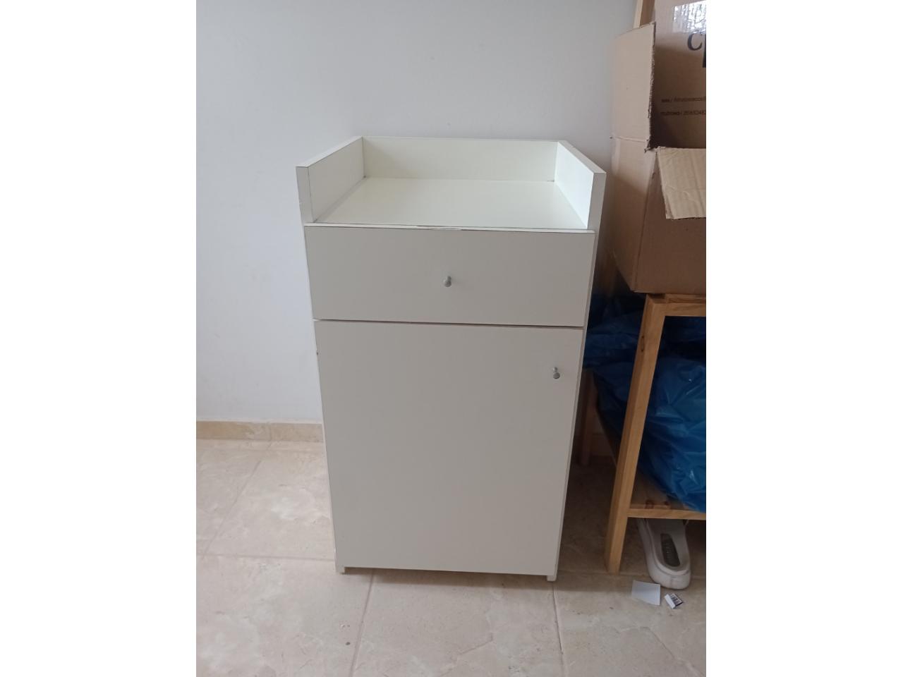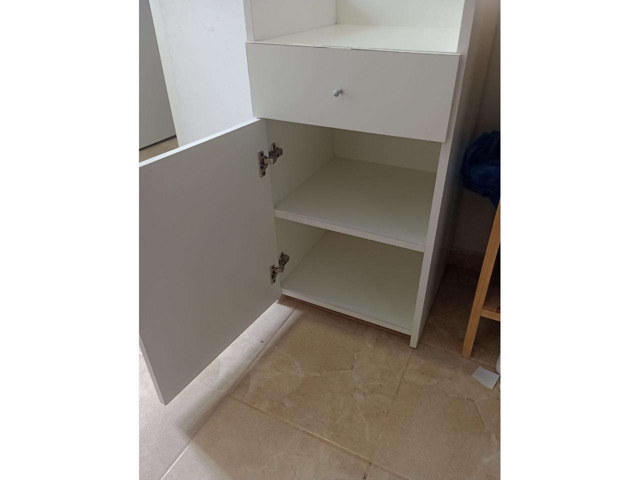 Mueble Melamina Blanco de 18mm con cajón y estante con puertas.